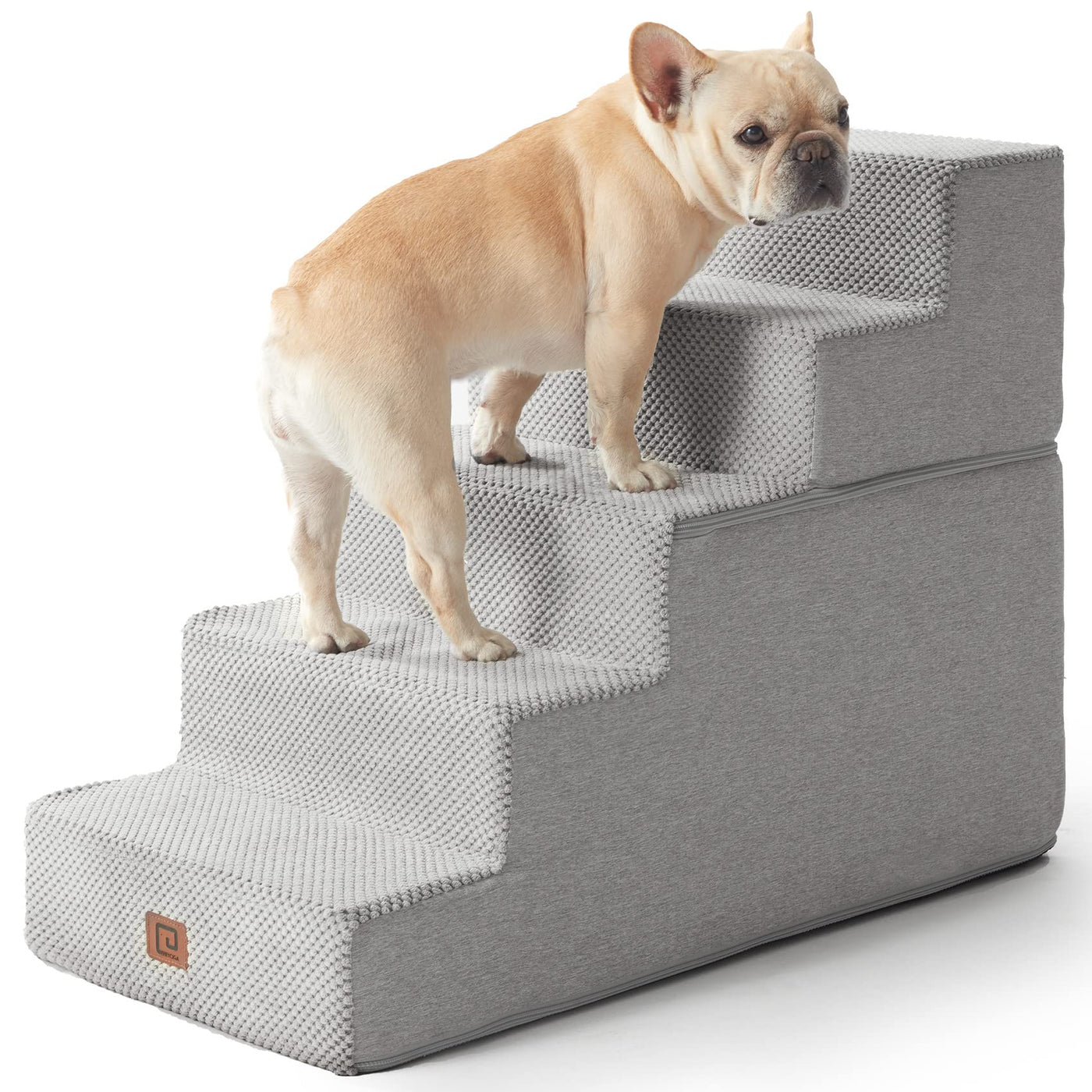 Eheyciga Dog Stairs For High Bed 22.5”H, 5-Step Dog Steps For Bed, Pet Steps For Small Dogs And Cats, Non-Slip Balanced Dog Indoor Ramp, Light Grey
