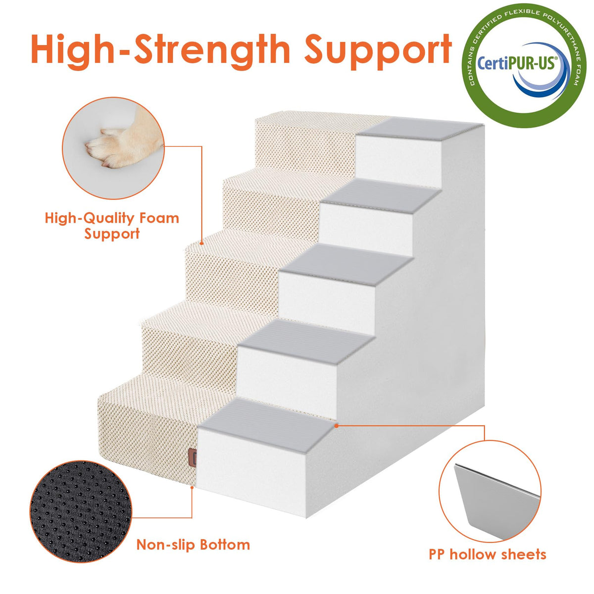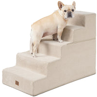 Eheyciga Dog Stairs For High Bed 25”H, 5-Step Extra Wide Dog Steps For Bed, Pet Steps For Small Dogs And Cats, Non-Slip Balanced Dog Indoor Ramp, Beige