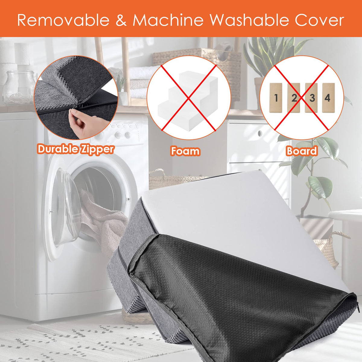 cOMFORTABLE PET STAIRS - This foam dog stair is designed directly against the edge of a bed sofa or other furniture so your pet can climb up and down comfortably Its a portable dog stair for small large and extra large dogs MULTIPLE STEP SIZES - This dog stair has 3 steps 4 steps and 5 steps to choose Our 3-step dog stairs are only suitable for sofa and low beds (no higher than 18inch) And 5-step dog stairs for high beds are more suitable (no higher than 27inch) If your bed is not too high or low which is medium height please choose 4-step dog stairs (no higher than 23inch) STEADY DESIgN - 30D density of pure foam and eco-friendly PP hollow sheet make this stair more steady It can also be folded into a simple dog bed to save your space and easy to carry Our foldable dog stair is a nice dog step for couch and bed EASY TO cLEAN - The dog step has a removable washable cover that can be hand washed or machine washed so you dont require spending a lot of time cleaning it Its very convenient cARE INSTRUcTION - After removing the foam from the compression bag please allow 24-48 hours for the foam to fully expand before use Please note that the inner foam is not washable