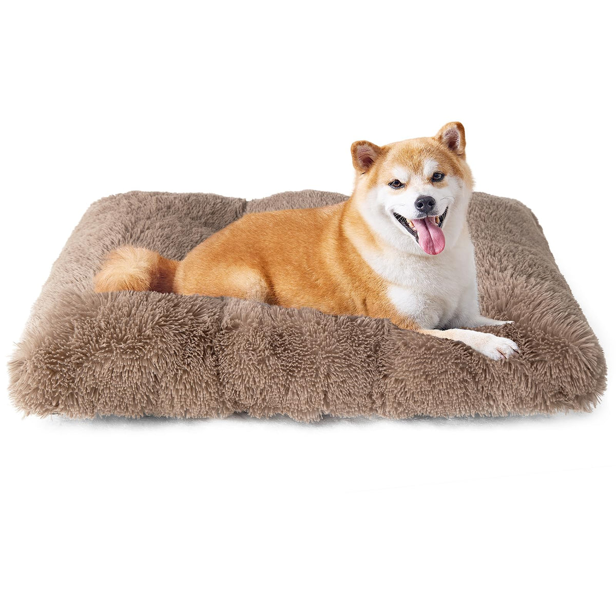 Eheyciga Fluffy Dog Crate Bed For Large Dogs, Plush Faux Fur Dog Crate Pad, Calming Anti Anxiety Large Dog Bed For Crate, Washable Soft Warm Dog Crate Mat With Non-Slip Bottom, Camel