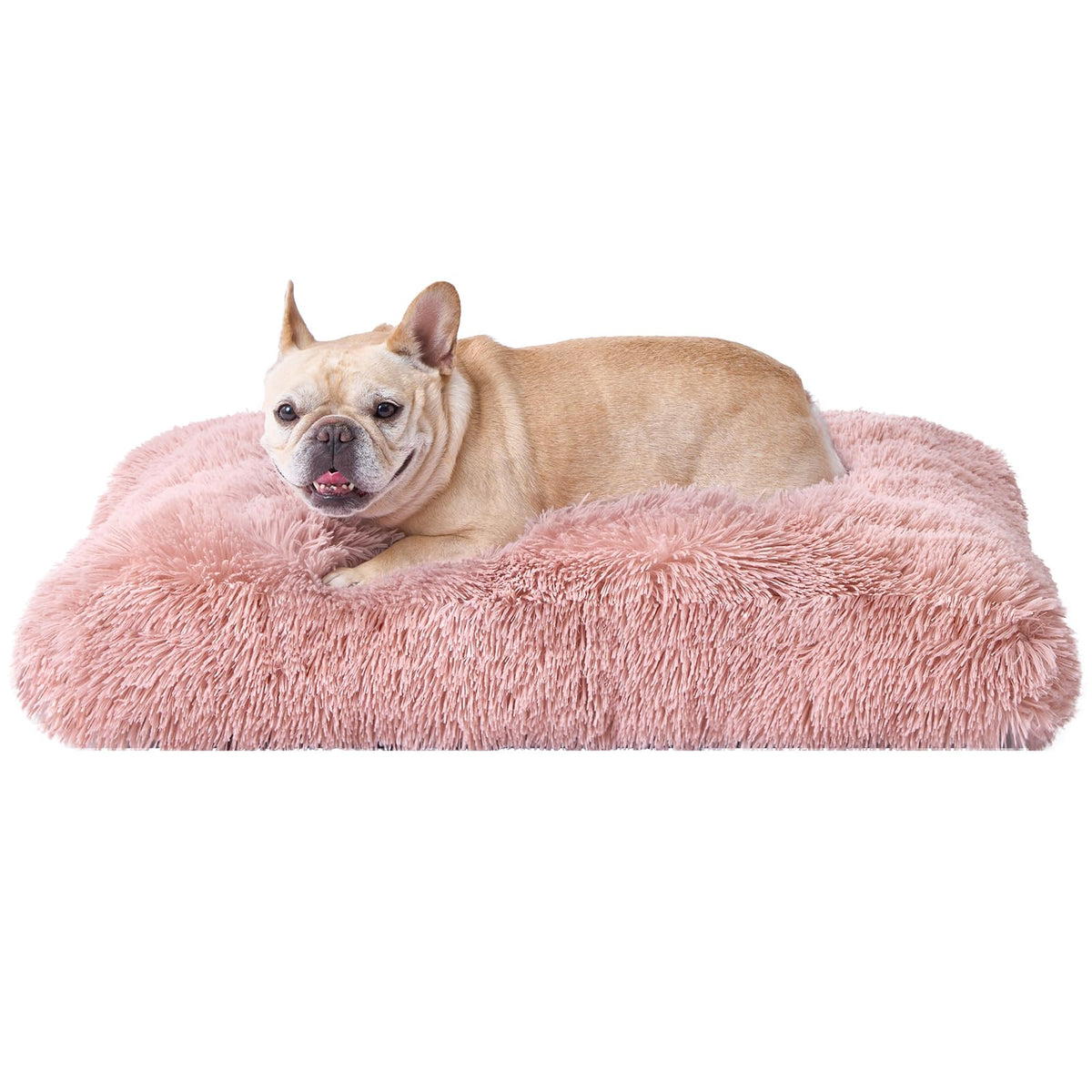 Q: Can this dog bed help with anxiety in pets?A: Yes, the EHEYCIGA Fluffy Dog Crate Bed is designed with a calming anti-anxiety feature. Its soft, fluffy texture provides a sense of security and warmth, making it an ideal choice for dogs prone to anxiety or separation issues.