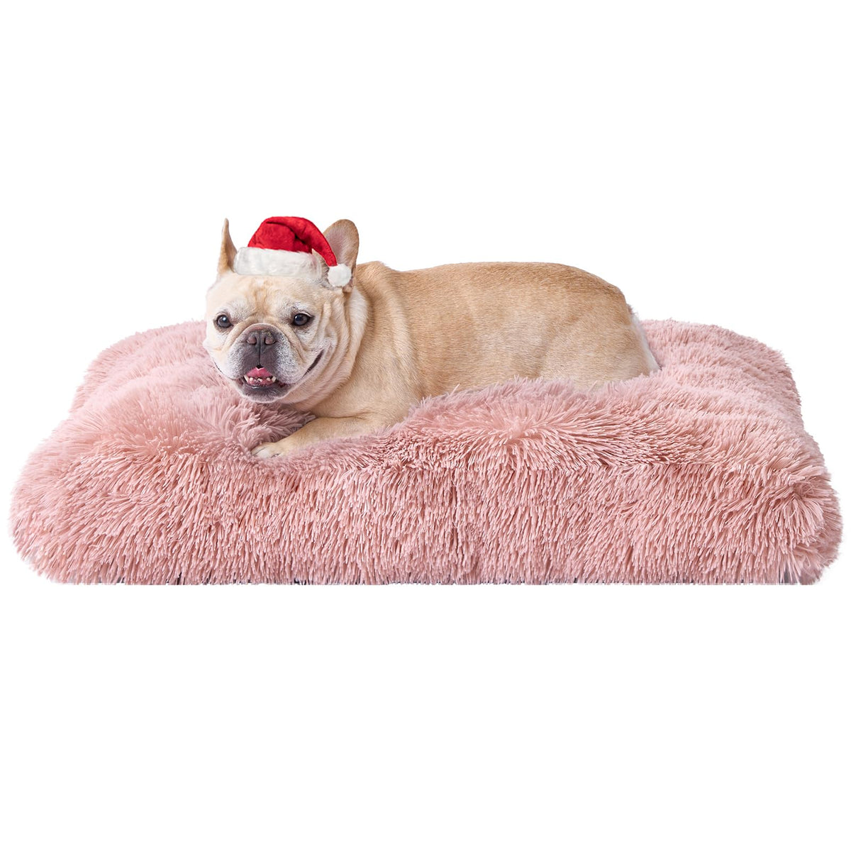 Eheyciga Fluffy Dog Crate Bed For Medium Dogs, Plush Faux Fur Dog Crate Pad, Calming Anti Anxiety Medium Dog Bed For Crate, Washable Soft Warm Dog Crate Mat With Non-Slip Bottom, Pink
