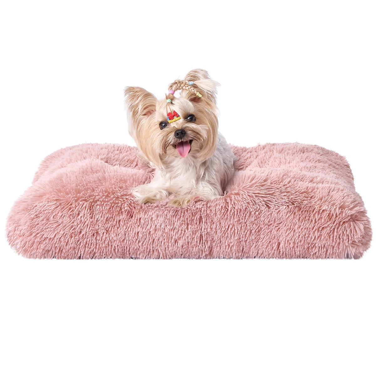 Eheyciga Fluffy Dog Crate Bed For Small Dogs, Plush Faux Fur Dog Crate Pad, Calming Anti Anxiety Small Dog Bed For Crate, Washable Soft Warm Dog Crate Mat With Non-Slip Bottom, Pink