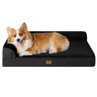 Give your beloved furry friend the ultimate in comfort and support with the EHEYCIGA Memory Foam Orthopedic Dog Bed for Large Dogs. Designed with their well-being in mind, this bed combines the benefits of memory foam, a waterproof exterior, and a plush, cozy design. Our orthopedic dog bed features a high-quality memory foam mattress that contours to your dog's body, providing optimal support and relieving pressure on their joints. The L-shaped design and raised sides offer a sense of security and a cozy space where your dog can curl up or stretch out as they please. The waterproof lining ensures protection against accidents and spills, making it an ideal choice for puppies or dogs prone to accidents. The removable and washable cover allows for easy cleaning and maintenance, ensuring a clean and fresh bed for your furry companion at all times. The plush and soft fabric cover provides a luxurious touch, while the nonskid bottom prevents the bed from sliding on smooth surfaces. This versatile pet bed can be placed in any room or area of your home, providing a comfortable and stylish spot for your dog to relax and unwind.