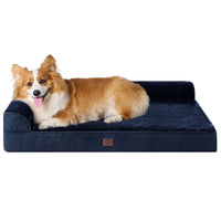 Give your beloved furry friend the ultimate in comfort and support with the EHEYCIGA Memory Foam Orthopedic Dog Bed for Large Dogs. Designed with their well-being in mind, this bed combines the benefits of memory foam, a waterproof exterior, and a plush, cozy design. Our orthopedic dog bed features a high-quality memory foam mattress that contours to your dog's body, providing optimal support and relieving pressure on their joints. The L-shaped design and raised sides offer a sense of security and a cozy space where your dog can curl up or stretch out as they please. The waterproof lining ensures protection against accidents and spills, making it an ideal choice for puppies or dogs prone to accidents. The removable and washable cover allows for easy cleaning and maintenance, ensuring a clean and fresh bed for your furry companion at all times. The plush and soft fabric cover provides a luxurious touch, while the nonskid bottom prevents the bed from sliding on smooth surfaces. This versatile pet bed can be placed in any room or area of your home, providing a comfortable and stylish spot for your dog to relax and unwind.