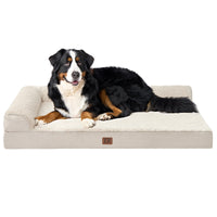 Give your beloved furry friend the ultimate in comfort and support with the EHEYCIGA Memory Foam Orthopedic Dog Bed for Large Dogs. Designed with their well-being in mind, this bed combines the benefits of memory foam, a waterproof exterior, and a plush, cozy design. Our orthopedic dog bed features a high-quality memory foam mattress that contours to your dog's body, providing optimal support and relieving pressure on their joints. The L-shaped design and raised sides offer a sense of security and a cozy space where your dog can curl up or stretch out as they please. The waterproof lining ensures protection against accidents and spills, making it an ideal choice for puppies or dogs prone to accidents. The removable and washable cover allows for easy cleaning and maintenance, ensuring a clean and fresh bed for your furry companion at all times. The plush and soft fabric cover provides a luxurious touch, while the nonskid bottom prevents the bed from sliding on smooth surfaces. This versatile pet bed can be placed in any room or area of your home, providing a comfortable and stylish spot for your dog to relax and unwind.