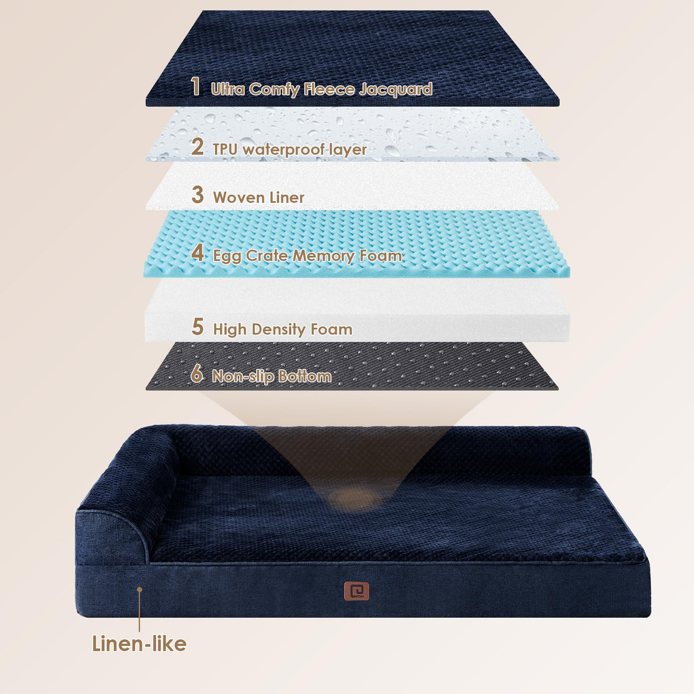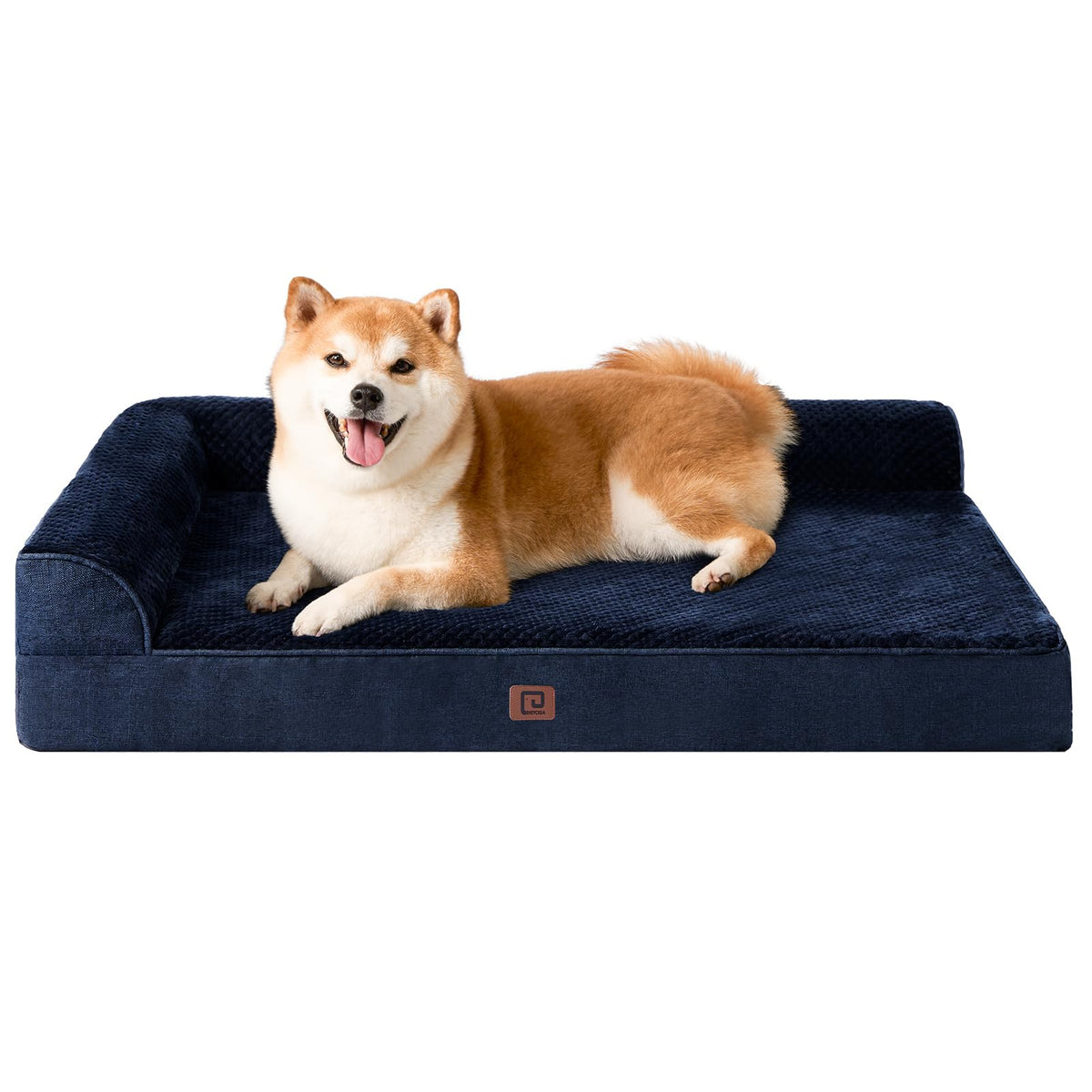 Eheyciga Memory Foam Large Dog Bed, Orthopedic Dog Beds For Large Dogs, Waterproof Egg Crate Dog Couch Bed With Washable Removable Cover And Non-Slip Bottom, L Shaped Dog Bed, Navy