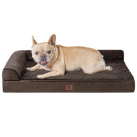 Give your beloved furry friend the ultimate in comfort and support with the EHEYCIGA Memory Foam Orthopedic Dog Bed for Large Dogs. Designed with their well-being in mind, this bed combines the benefits of memory foam, a waterproof exterior, and a plush, cozy design. Our orthopedic dog bed features a high-quality memory foam mattress that contours to your dog's body, providing optimal support and relieving pressure on their joints. The L-shaped design and raised sides offer a sense of security and a cozy space where your dog can curl up or stretch out as they please. The waterproof lining ensures protection against accidents and spills, making it an ideal choice for puppies or dogs prone to accidents. The removable and washable cover allows for easy cleaning and maintenance, ensuring a clean and fresh bed for your furry companion at all times. The plush and soft fabric cover provides a luxurious touch, while the nonskid bottom prevents the bed from sliding on smooth surfaces. This versatile pet bed can be placed in any room or area of your home, providing a comfortable and stylish spot for your dog to relax and unwind.