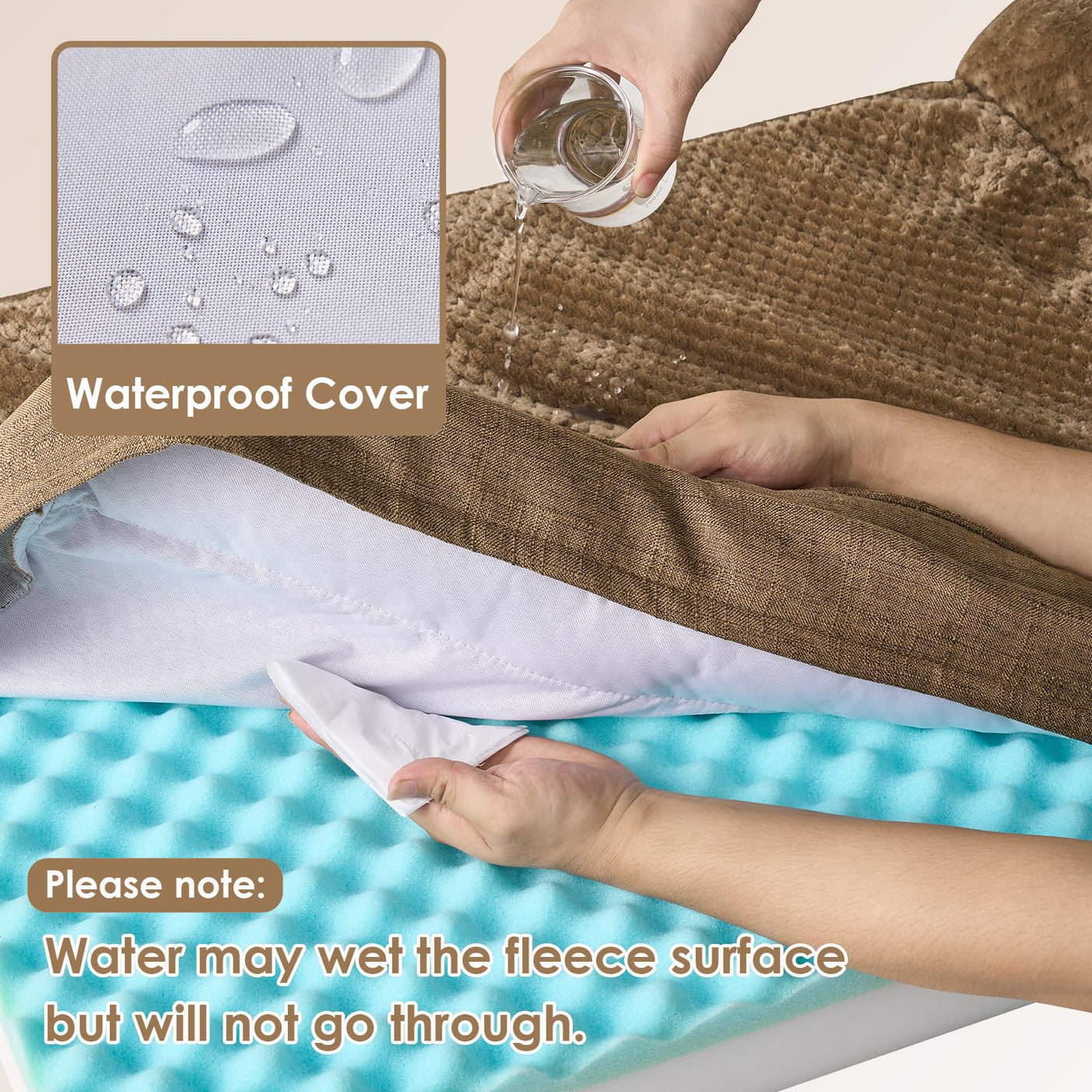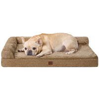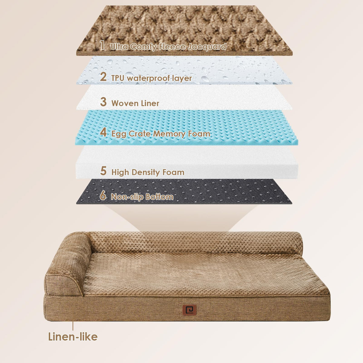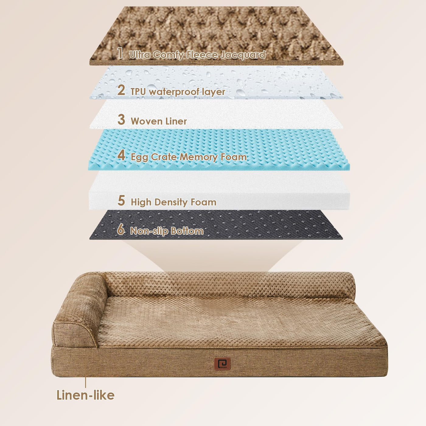 Give your beloved furry friend the ultimate in comfort and support with the EHEYCIGA Memory Foam Orthopedic Dog Bed for Large Dogs. Designed with their well-being in mind, this bed combines the benefits of memory foam, a waterproof exterior, and a plush, cozy design. Our orthopedic dog bed features a high-quality memory foam mattress that contours to your dog's body, providing optimal support and relieving pressure on their joints. The L-shaped design and raised sides offer a sense of security and a cozy space where your dog can curl up or stretch out as they please. The waterproof lining ensures protection against accidents and spills, making it an ideal choice for puppies or dogs prone to accidents. The removable and washable cover allows for easy cleaning and maintenance, ensuring a clean and fresh bed for your furry companion at all times. The plush and soft fabric cover provides a luxurious touch, while the nonskid bottom prevents the bed from sliding on smooth surfaces. This versatile pet bed can be placed in any room or area of your home, providing a comfortable and stylish spot for your dog to relax and unwind.
