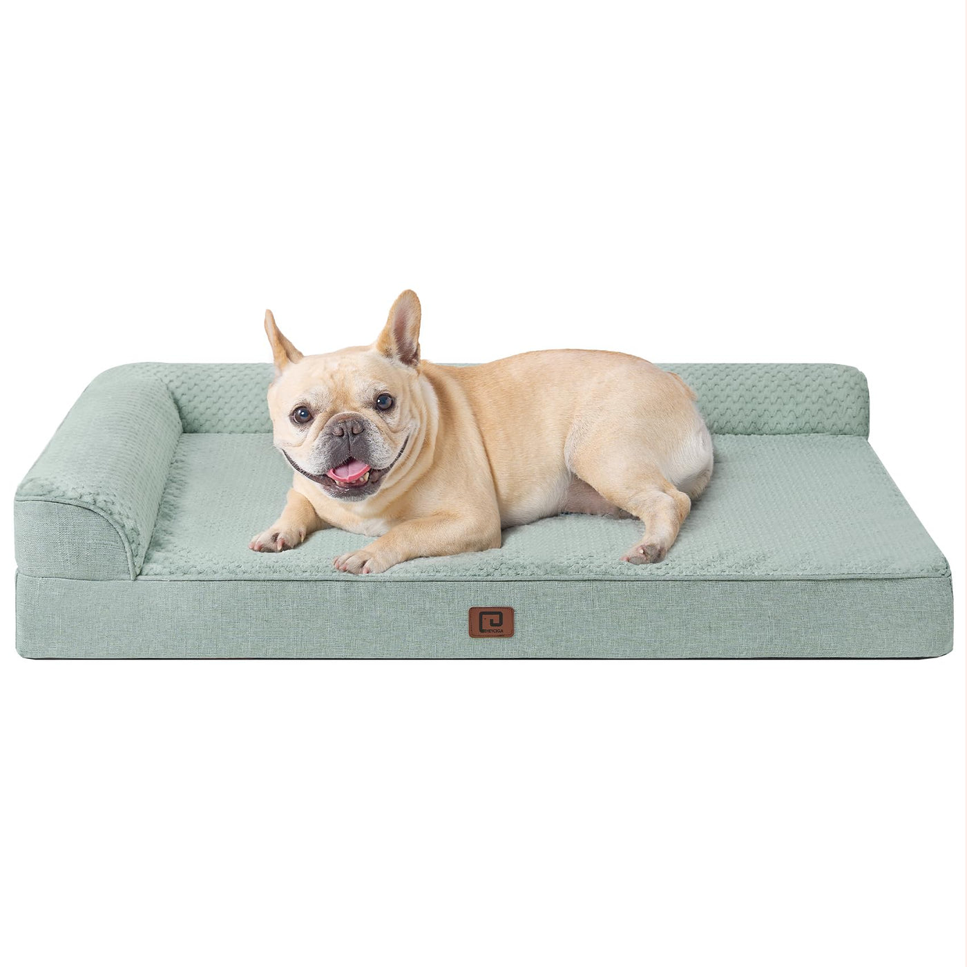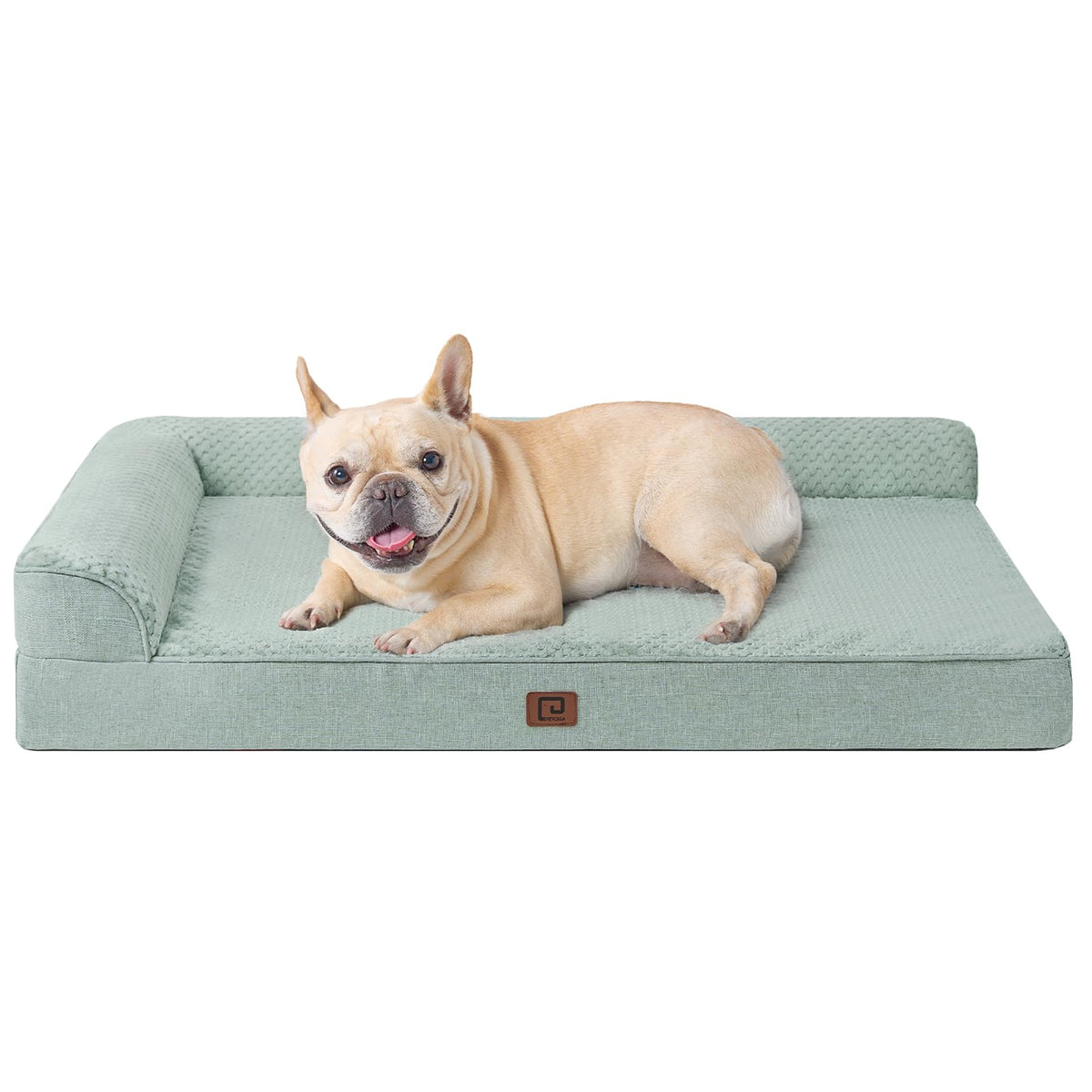 Give your beloved furry friend the ultimate in comfort and support with the EHEYCIGA Memory Foam Orthopedic Dog Bed for Large Dogs. Designed with their well-being in mind, this bed combines the benefits of memory foam, a waterproof exterior, and a plush, cozy design. Our orthopedic dog bed features a high-quality memory foam mattress that contours to your dog's body, providing optimal support and relieving pressure on their joints. The L-shaped design and raised sides offer a sense of security and a cozy space where your dog can curl up or stretch out as they please. The waterproof lining ensures protection against accidents and spills, making it an ideal choice for puppies or dogs prone to accidents. The removable and washable cover allows for easy cleaning and maintenance, ensuring a clean and fresh bed for your furry companion at all times. The plush and soft fabric cover provides a luxurious touch, while the nonskid bottom prevents the bed from sliding on smooth surfaces. This versatile pet bed can be placed in any room or area of your home, providing a comfortable and stylish spot for your dog to relax and unwind.