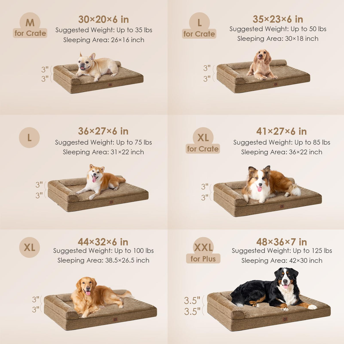 Eheyciga Memory Foam Orthopedic Dog Beds Large Sized Dog With Waterproof Lining, Washable Dog Sofa Bed With Removable Cover And Nonskid Bottom For Crate Pet Couch Bed, 35X23 Inches, Camel