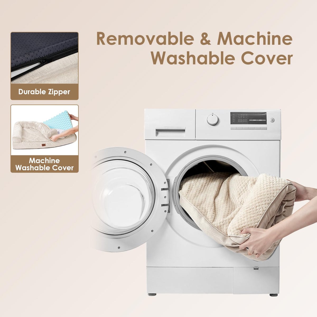 Q: Is the cover of the EHEYCIGA dog bed removable and washable?A: Yes, the EHEYCIGA dog bed features a removable cover with a zipper closure, making it easy to clean. You can wash the cover to maintain hygiene and ensure a fresh sleeping environment for your pet. However, please note that the inner memory foam is not washable.