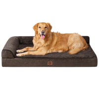 Q: What are the benefits of the EHEYCIGA Memory Foam Orthopedic Dog Bed?A: The EHEYCIGA Memory Foam Orthopedic Dog Bed provides excellent support for large dogs, thanks to its high-quality memory foam that contours to your dog's body. It helps relieve pressure on joints, making it ideal for older dogs or those with arthritis. The L-shaped design offers additional support for the neck and head, ensuring a restful sleep.
