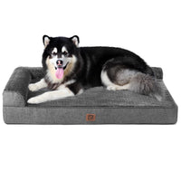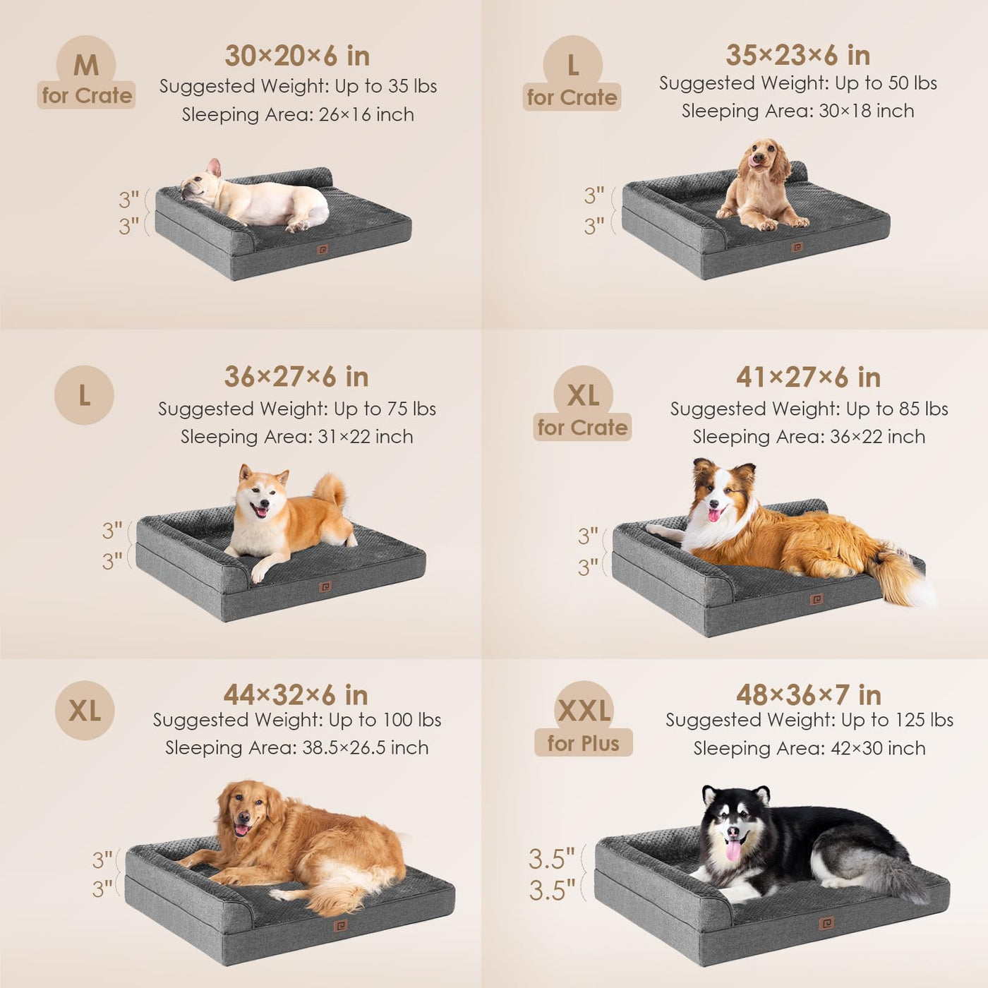Give your beloved furry friend the ultimate in comfort and support with the EHEYCIGA Memory Foam Orthopedic Dog Bed for Large Dogs. Designed with their well-being in mind, this bed combines the benefits of memory foam, a waterproof exterior, and a plush, cozy design. Our orthopedic dog bed features a high-quality memory foam mattress that contours to your dog's body, providing optimal support and relieving pressure on their joints. The L-shaped design and raised sides offer a sense of security and a cozy space where your dog can curl up or stretch out as they please. The waterproof lining ensures protection against accidents and spills, making it an ideal choice for puppies or dogs prone to accidents. The removable and washable cover allows for easy cleaning and maintenance, ensuring a clean and fresh bed for your furry companion at all times. The plush and soft fabric cover provides a luxurious touch, while the nonskid bottom prevents the bed from sliding on smooth surfaces. This versatile pet bed can be placed in any room or area of your home, providing a comfortable and stylish spot for your dog to relax and unwind.
