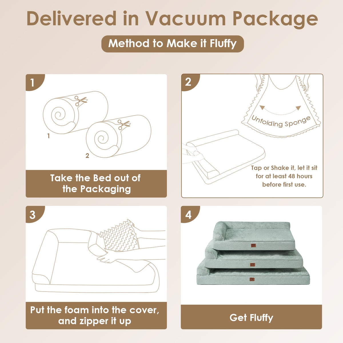 Give your beloved furry friend the ultimate in comfort and support with the EHEYCIGA Memory Foam Orthopedic Dog Bed for Large Dogs. Designed with their well-being in mind, this bed combines the benefits of memory foam, a waterproof exterior, and a plush, cozy design. Our orthopedic dog bed features a high-quality memory foam mattress that contours to your dog's body, providing optimal support and relieving pressure on their joints. The L-shaped design and raised sides offer a sense of security and a cozy space where your dog can curl up or stretch out as they please. The waterproof lining ensures protection against accidents and spills, making it an ideal choice for puppies or dogs prone to accidents. The removable and washable cover allows for easy cleaning and maintenance, ensuring a clean and fresh bed for your furry companion at all times. The plush and soft fabric cover provides a luxurious touch, while the nonskid bottom prevents the bed from sliding on smooth surfaces. This versatile pet bed can be placed in any room or area of your home, providing a comfortable and stylish spot for your dog to relax and unwind.