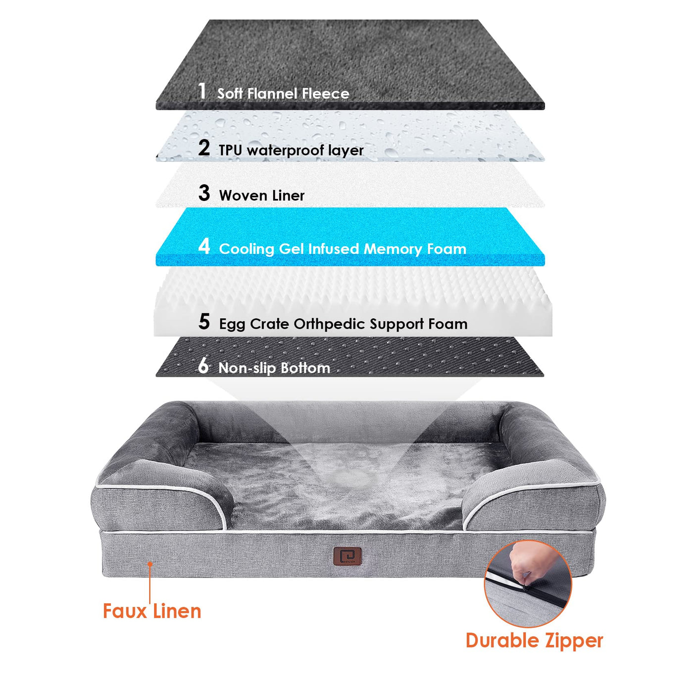 Eheyciga Orthopedic Dog Beds For Large Dogs, Waterproof Memory Foam Bed With Sides, Non-Slip Bottom And Egg-Crate Foam Couch Bed With Washable Removable Cover, Grey