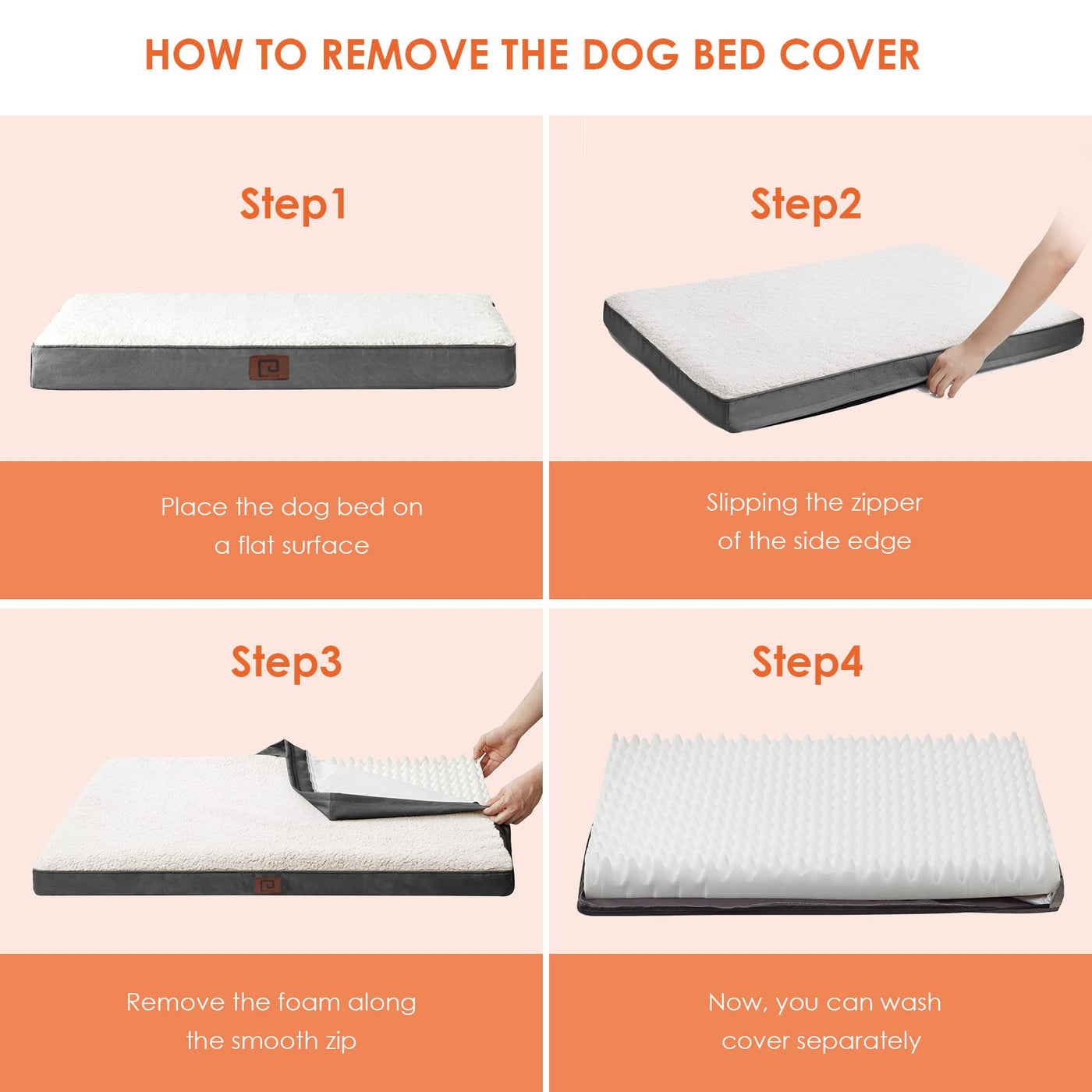 Q: Is the cover of the dog bed washable?A: Yes, the EHEYCIGA dog bed features a zippered removable cover that is machine washable. For best results, tumble dry on low heat, but do not bleach or iron the cover.
