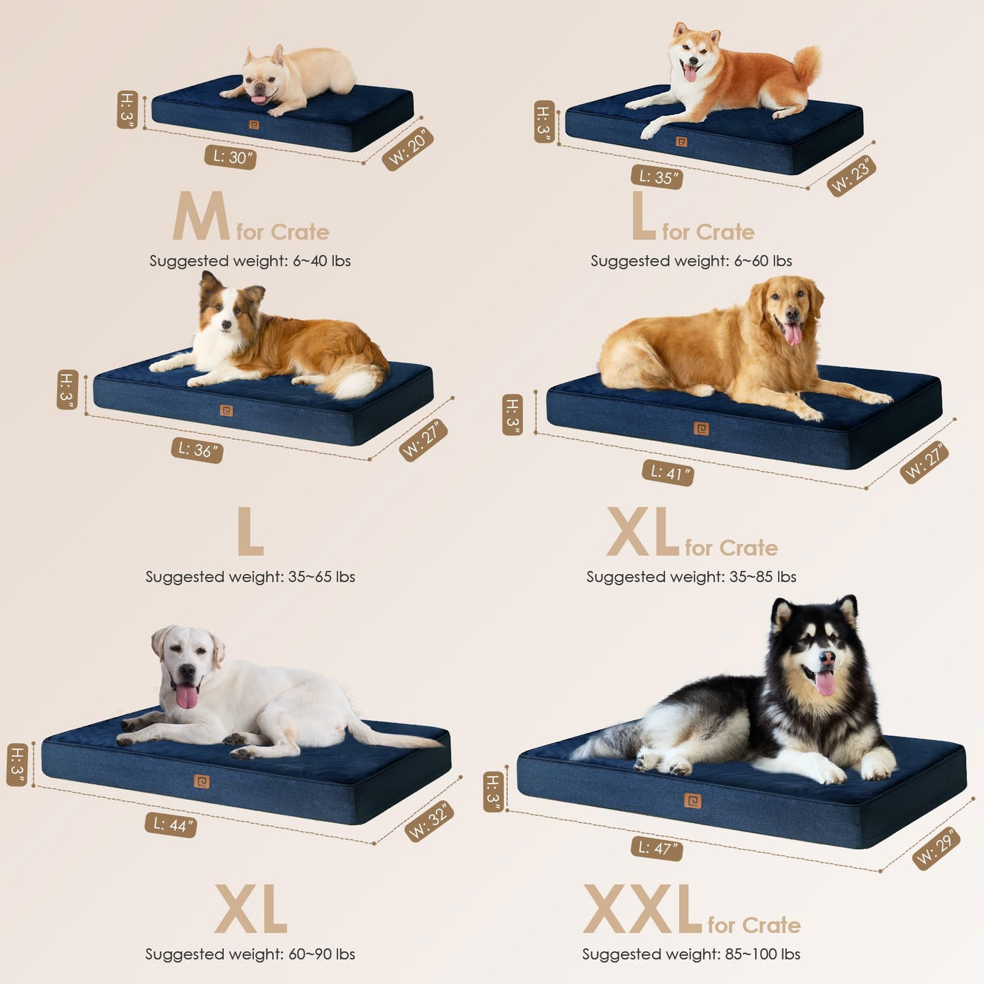 Eheyciga Orthopedic Memory Foam Dog Beds For Extra Large Dogs With Removable Waterproof Liner, Navy, 41X27