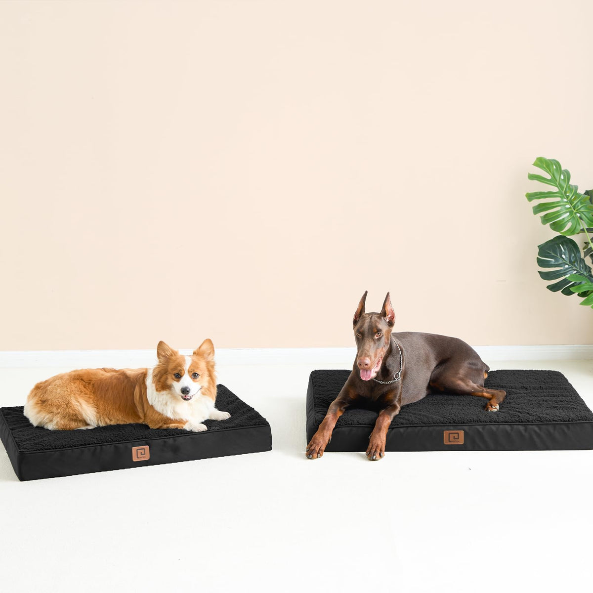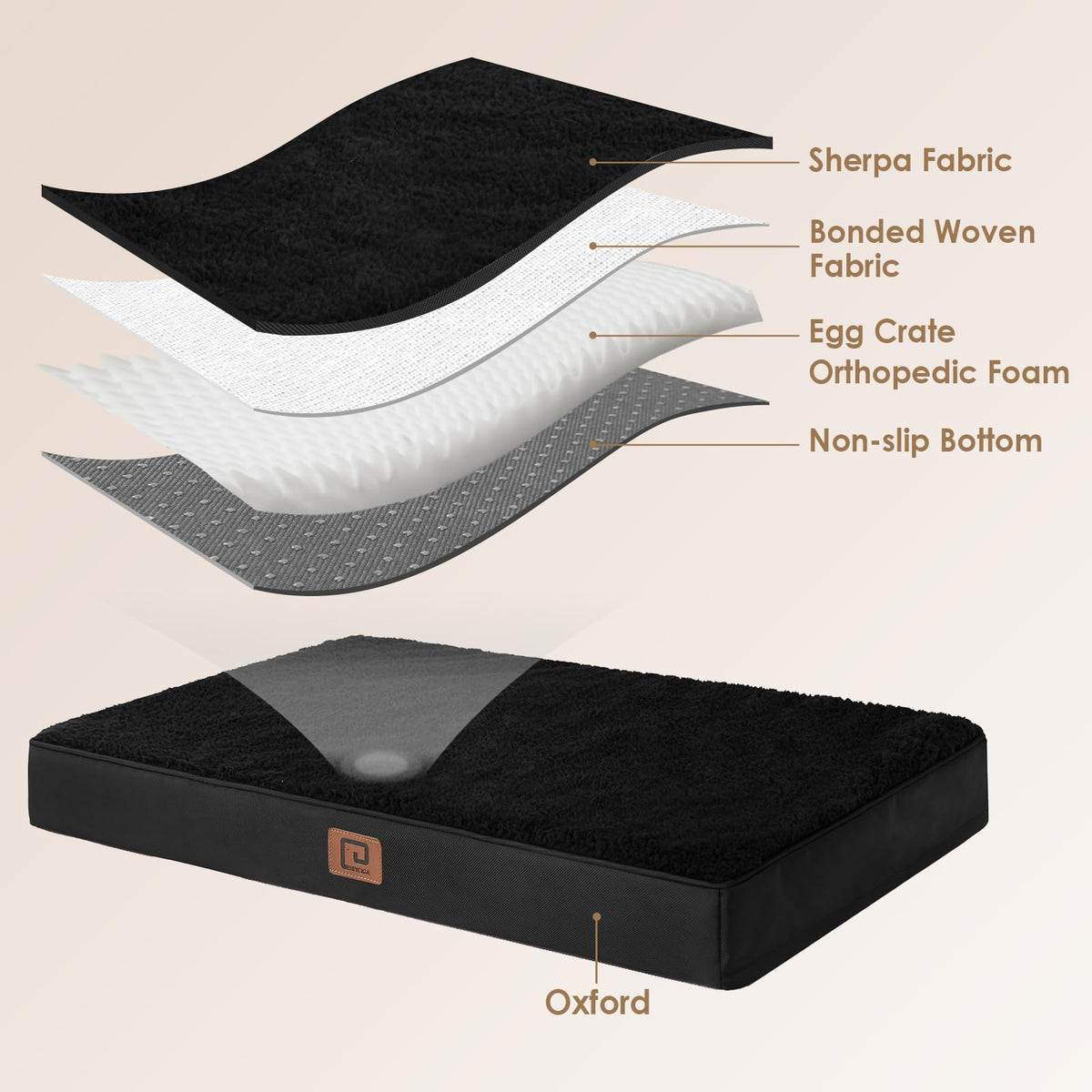 Q: How does the orthopedic support benefit my dog?A: The orthopedic support provided by the 3.5-inch high-density egg-crate foam helps alleviate pressure on your dog's joints and muscles, promoting better sleep and overall comfort, especially for older or larger dogs.