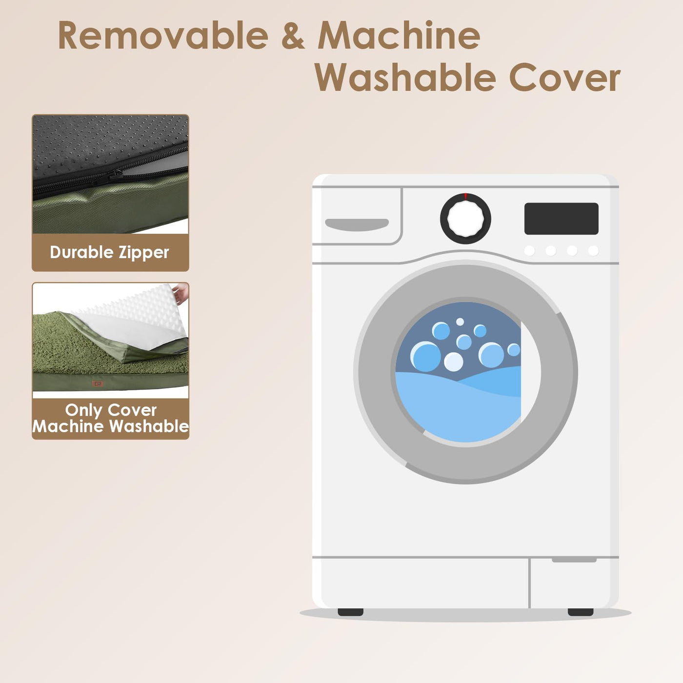 Q: Can I wash the cover of the EHEYCIGA dog bed?A: Yes, the EHEYCIGA Orthopedic XL Dog Bed features a zippered removable cover that is machine washable. You can easily clean it by unzipping the cover and placing it in the washing machine. However, please note that the inner foam is not washable.