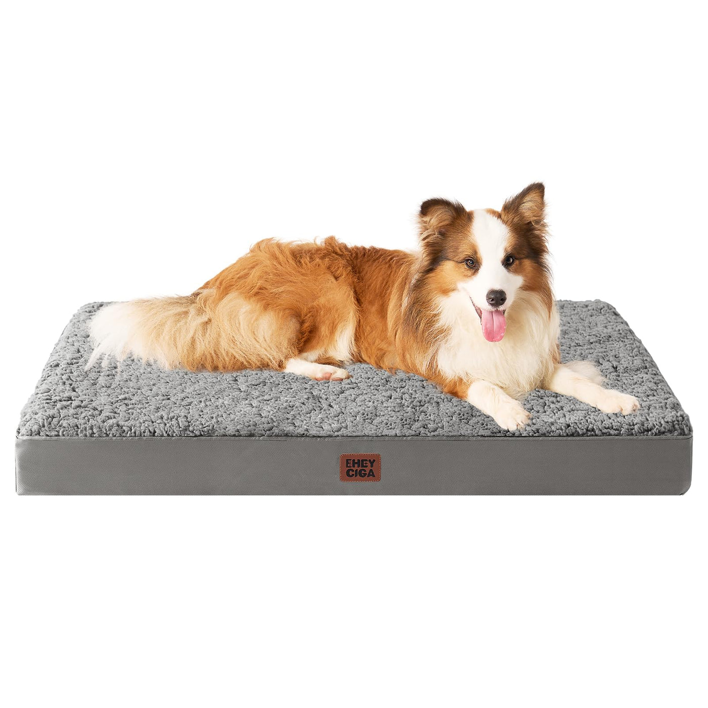 Provide your cherished furry companion with the utmost comfort and support they deserve with the EHEYCIGA Washable Dog Bed for Large Dogs. This exceptional bed is specifically designed for large dogs, offering a combination of orthopedic support, durability, and convenient maintenance. Our large dog bed features a plush and supportive cushion that provides optimal orthopedic support for your dog's joints and muscles. The spacious design ensures ample space for your pup to stretch out and relax. The premium construction guarantees long-lasting durability to withstand your dog's playful antics and everyday use. The removable and washable cover makes cleaning a breeze. Simply unzip the cover and toss it in the washing machine to freshen up the bed easily. The grey color adds a touch of elegance to any room, seamlessly blending with your home decor. This versatile pet bed is perfect for various scenarios, including crates, kennels, and as a standalone bed. It offers a comfortable and cozy spot where your dog can rest, relax, and sleep peacefully. Invest in the EHEYCIGA Washable Dog Bed for Large Dogs and provide your furry friend with a comfortable and durable resting place. Let them enjoy the benefits of an orthopedic bed while you appreciate the convenience of easy maintenance. Upgrade your pet's sleeping experience with this high-quality dog bed and make them feel loved and pampered.