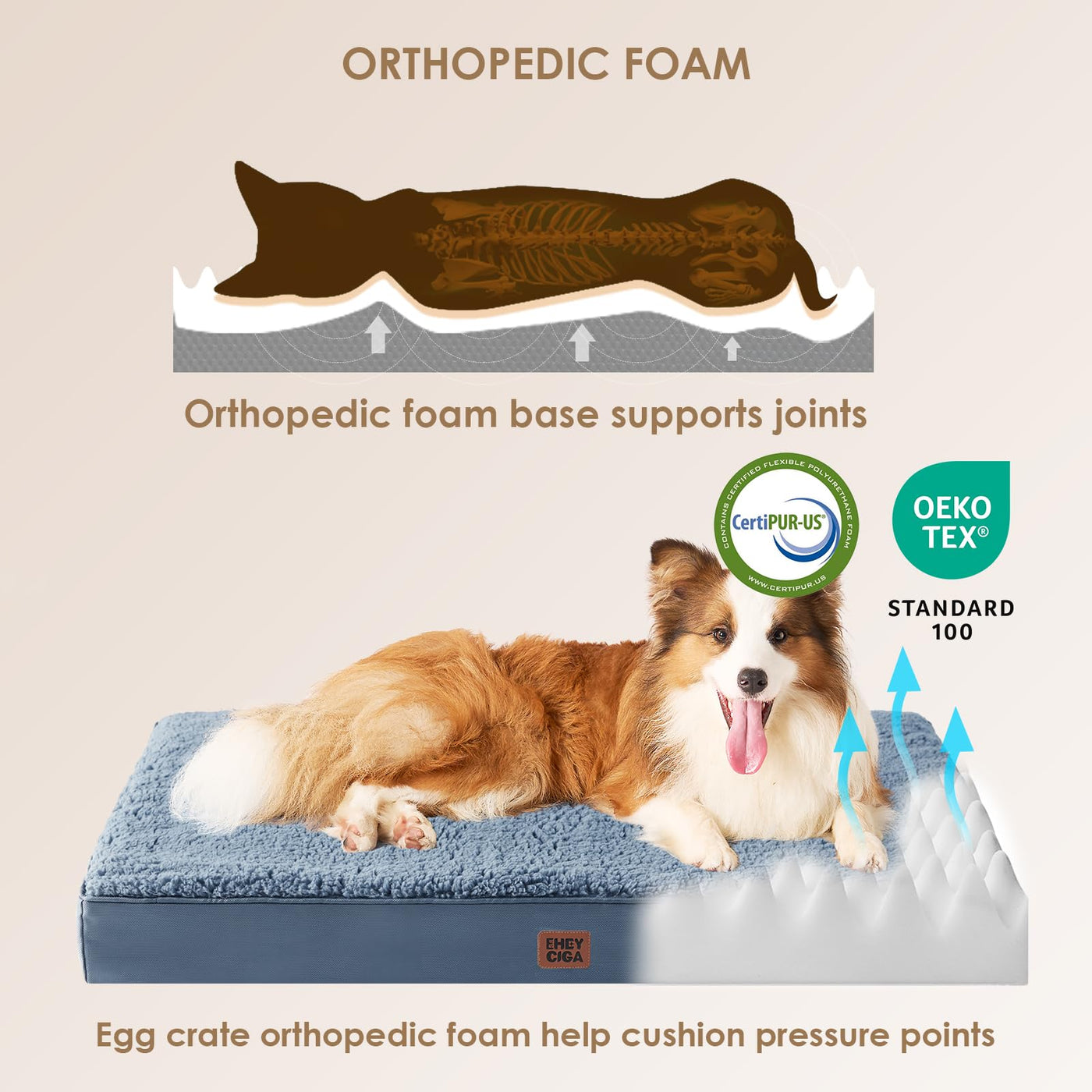 Q: How does the orthopedic design benefit my dog?A: The orthopedic design of the EHEYCIGA dog bed provides support to your dog's joints and muscles, making it ideal for older dogs or those with arthritis or joint pain.