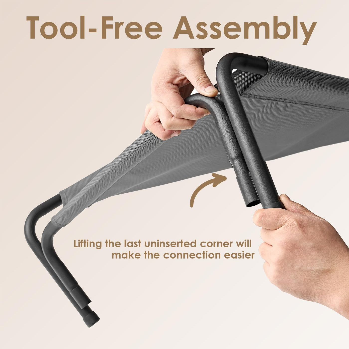 Q: Is the elevated dog bed easy to assemble and disassemble?A: Yes, the EHEYCIGA dog bed features tool-free assembly, allowing for quick and effortless setup in just a few minutes, making it perfect for pet owners who need convenience.
