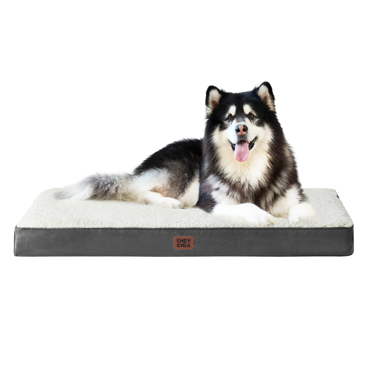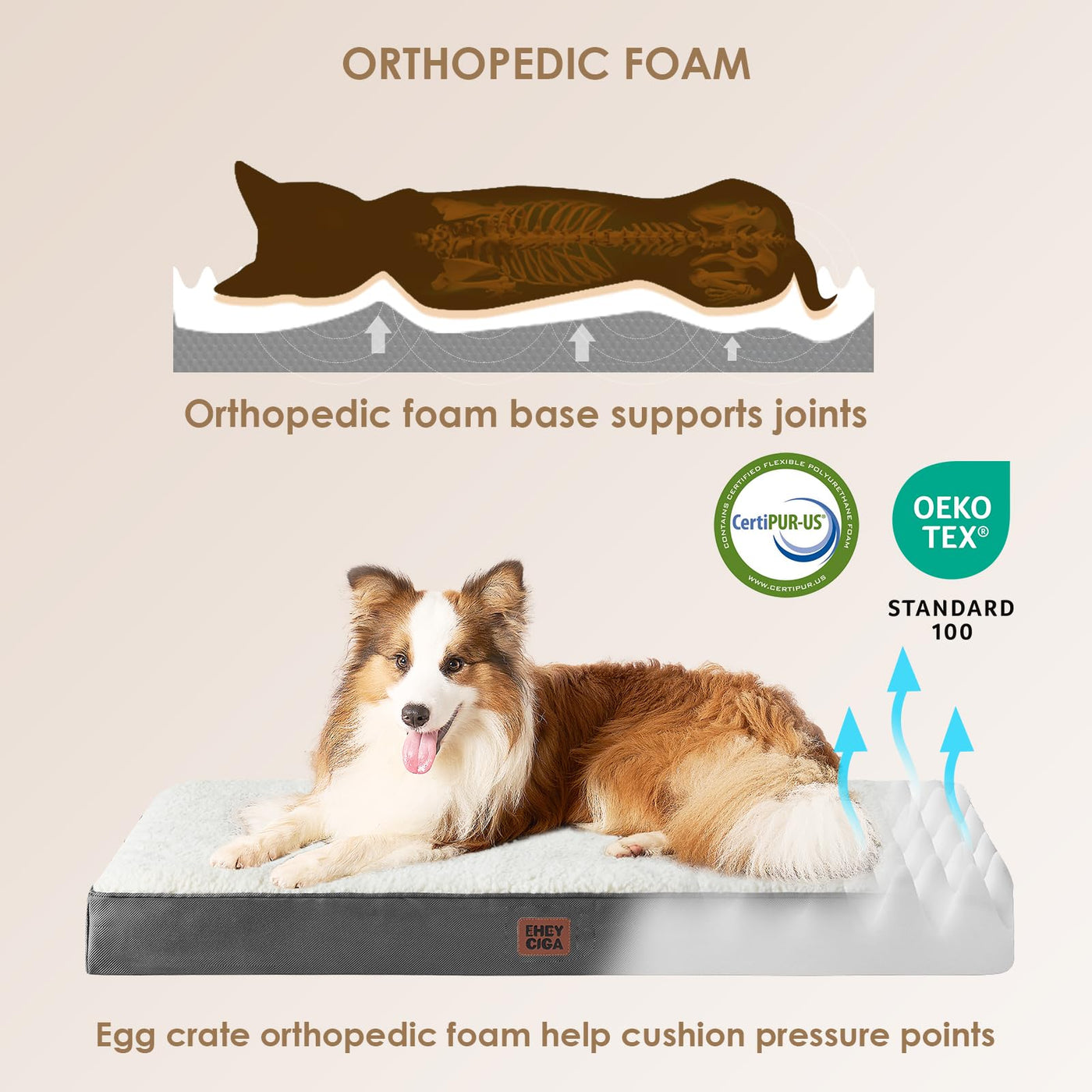 All SIZE SUPPLIED: EHEYcIgA dog beds for medium large and extra large dogs have many sizes which can fit all kinds of scenes including using in dog kennels and crates and placing directly on the floor to bring you convenience to choose the best suitable dog bed for large dogs SUPPORTIVE Egg-cRATE FOAM: Our orthopedic dog bed large constructed with 35 inches high density egg foam and will provide great support and comfort for dogs and cats SUPPORTIVE FOAM cHOSEN: Our foam dog mat constructed with 35-inch high density finest quality foam slab give your pal a perfectly comfy place ULTIMATE SLEEP SURFAcE: Plush sherpa top and non-skid bottom of EHEYcIgA flat dog mattress bed creates ultimate softness and coziness for your pets without moving everywhere cARE INSTRUcTIONS: Zippered removable cover is machine washable Tumble dry on low heat DO NOT BLEAcH DO NOT IRON Please note that the inner foam is not washable After receiving it leave it for 24-48h for rebound