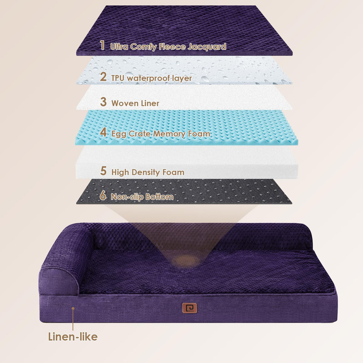 Eheyciga Xl Memory Foam Dog Bed, Orthopedic Dog Beds For Extra Large Dogs, Waterproof Egg Crate Dog Couch Bed With Washable Removable Cover And Non-Slip Bottom, L Shaped Dog Bed, Purple