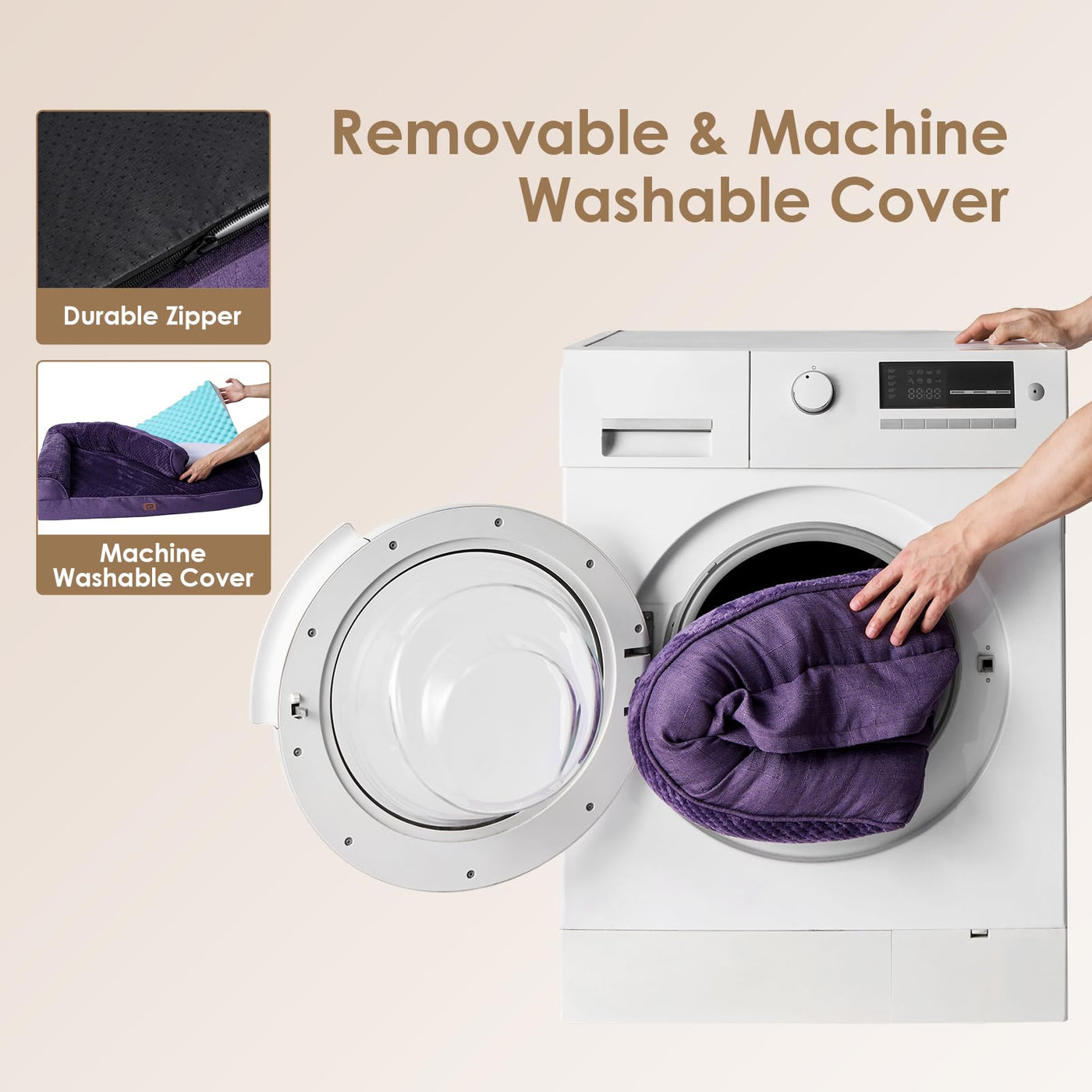 Q: Is the cover of the EHEYCIGA dog bed machine washable?A: Yes, the EHEYCIGA dog bed features a removable cover with a zipper closure that is machine washable for easy cleaning and maintenance.