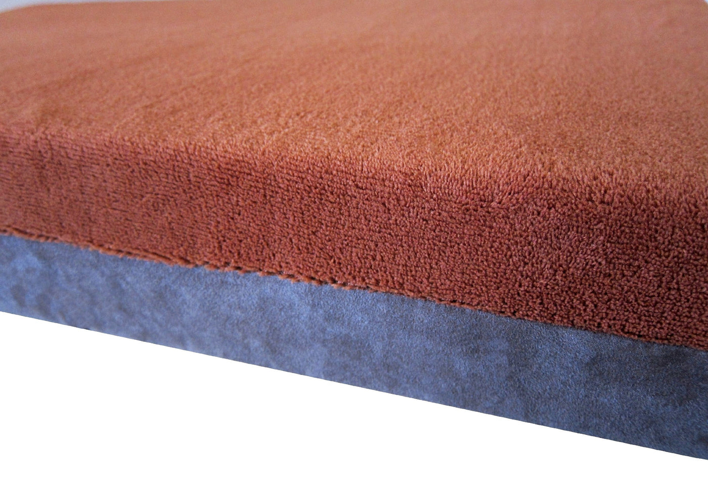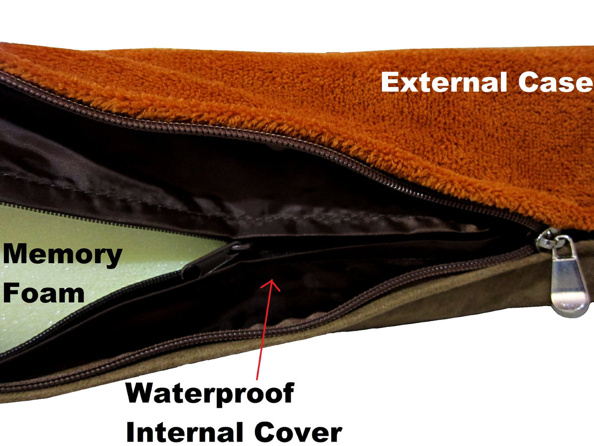 2 External covers : Coral Fleece external zipper cover in Sudan Brown color on top and Microfiber suede fabric in coffee brown color at bottom side ( 58''X41'' flat cover size ). The memory foam is secured by Waterproof internal zipper cover. Machines Washable external covers.