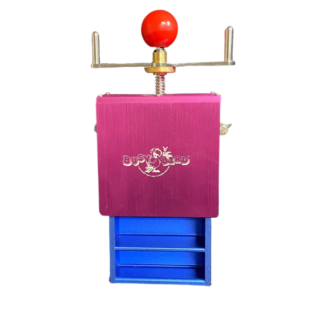 Busy Birds Mechanical / Foraging Parrot Toys Are Built To Last For The Life Of Your Bird. Constructed Of Solid Anodized Aluminum And Some Stainless Steel, Our Toys Are Safe, Durable And Lightweight. They Are Chemical And Dishwasher Safe- The Colors Wont Wash Away Or Fade. All Toys With Wing Nuts And Hex Nuts Are Hassle-Free, As They Won'T Come Off Their Bolts. The Thread At The End Of The Bolts Are Altered, So Your Feathered Friend Cant Get Them Off And You Dont Have To Forage Around The Floor Of The Cage To Find Them. Your Bird Will Love It!