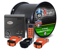 Extreme Dog Fence Contain And Train Professional Grade Kit - 3 Dog Fence + Remote Training Collar And 1000' Of 16 Gauge Electric Dog Fence Boundary Wire** For Medium To Large Dogs From 40 To 180 Lbs **Includes:- 1X Fence Transmitter- 3X Fence + Trainer Collars (Rechargeable)- 1000' Of 16 Gauge Heavy Duty Perimeter Wire- 1X Handheld Trainer Remote (Rechargeable)- 1X Usb Charger Cable- 3 Sets Of Short Contacts- 3 Sets Of Long Contacts- 50X Training Flags- 2X Splice Kits- Setup And Training Manual You Asked For It, And Extreme Dog Fence Listened. The Newest Addition To The Worlds Best Underground Dog Fence System Line Of Products Is The Extreme Dog Fence Contain And Train Electric Dog Fence Outdoor Containment System And Remote Trainer. Yes, 2 Solutions In One Collar. Keep Your Pet(S) Safely Contained In Your Yard With The Fence, While The Remote Trainer Teaches Your Dog Good Behavior Habits, Or Break Bad Ones.The Collar Receiver Will Emit A Low Beep, When Your Dog Enters The Dog Fence Signal Field. Next, They Will Feel A Vibration Warning. The Collar Receiver Has 3 Automatic Progressive Levels Of Fence Correction, Which Start Low And Increase As Your Dog Continues To Approach The Dog Fence Wire.The Handheld Wireless Remote Can Control Up To 3 Collars At A Time. Each Collar Has A Beep, 10 Vibration Levels And 10 Correction Levels, On The Trainer. These Are Set Per Each Dog'S Individual Requirements.Your Pet Deserves The Best. Get Your Extreme Dog Fence Contain And Train System Now!!!