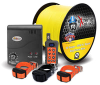 Extreme Dog Fence Contain And Train Economy Kit - 3 Dog Fence + Remote Training Collars And 1000' Of 20 Gauge Electric Dog Fence Boundary Wire** For Medium To Large Dogs From 40 To 180 Lbs **Includes:- 1X Fence Transmitter- 3X Fence + Trainer Collars (Rechargeable)- 1000' Of 20 Gauge Perimeter Wire- 1X Handheld Trainer Remote (Rechargeable)- 1X Usb Charger Cable- 3 Sets Of Short Contacts- 3 Sets Of Long Contacts- 100X Training Flags- 2X Splice Kits- Setup And Training Manualyou Asked For It, And Extreme Dog Fence Listened. The Newest Addition To The Worlds Best Underground Dog Fence System Line Of Products Is The Extreme Dog Fence Contain And Train Electric Dog Fence Outdoor Containment System And Remote Trainer. Yes, 2 Solutions In One Collar. Keep Your Pet(S) Safely Contained In Your Yard With The Fence, While The Remote Trainer Teaches Your Dog Good Behavior Habits, Or Break Bad Ones.The Collar Receiver Will Emit A Low Beep, When Your Dog Enters The Dog Fence Signal Field. Next, They Will Feel A Vibration Warning. The Collar Receiver Has 3 Automatic Progressive Levels Of Fence Correction, Which Start Low And Increase As Your Dog Continues To Approach The Dog Fence Wire.The Handheld Wireless Remote Can Control Up To 3 Collars At A Time. Each Collar Has A Beep, 10 Vibration Levels And 10 Correction Levels, On The Trainer. These Are Set Per Each Dog'S Individual Requirements.Your Pet Deserves The Best. Get Your Extreme Dog Fence Contain And Train System Now!!!