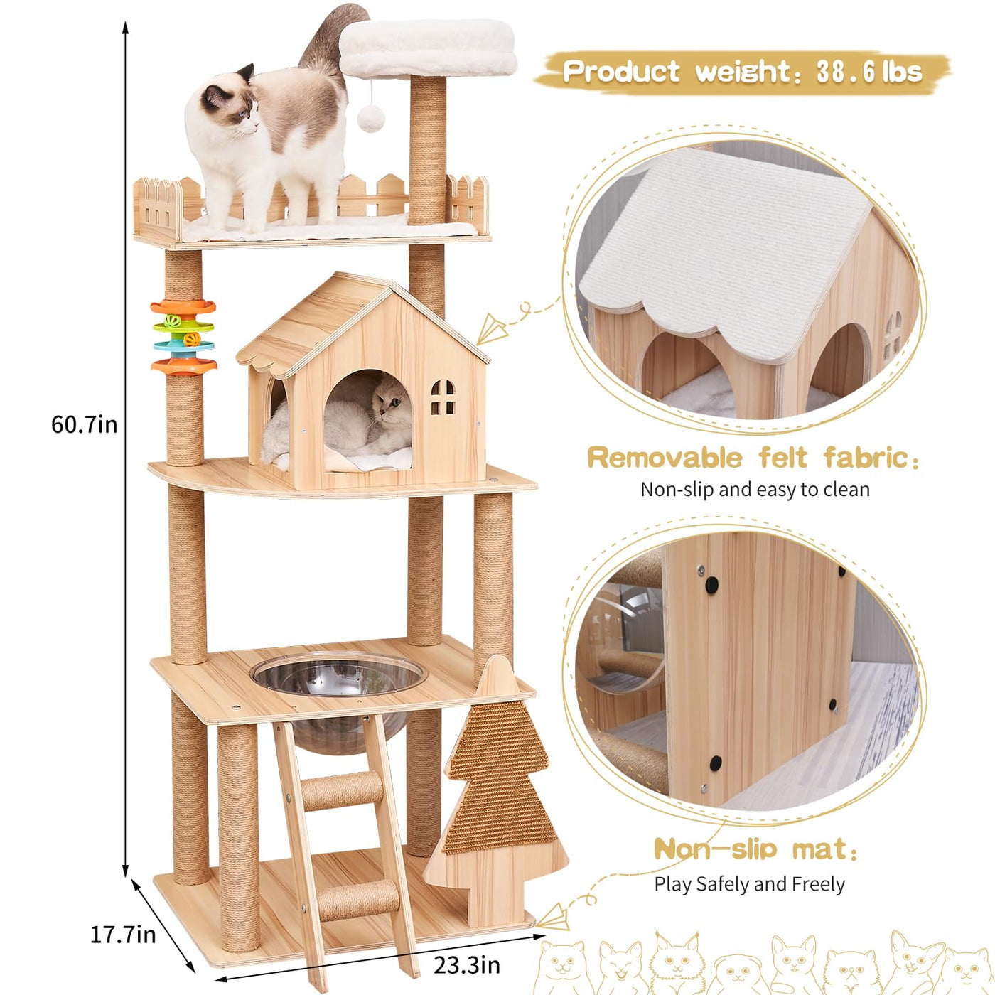 Our Deluxe Cat Lookout Tower Is A Multi-Functional Cat Tree Made Of Plywood, Designed To Provide Maximum Comfort And Entertainment For Your Beloved Pet. Allow Your Cat To Satisfy Their Natural Curiosity By Standing On The High Cat Lookout Tower, Gazing Into The Distance. The Spacious And Cozy Big Cat Nest Offers A Private Space For Relaxation, Keeping Your Cat Warm And Secure. The Sisal Rope Post Is Wrapped With Thick, Durable Sisal Rope, Promoting Healthy Nail Maintenance And Saving Your Furniture From Unwanted Scratches. Key Features: - Cat Tree Tower For Indoor Cats - Large Adult Cat Tower With Scratching Post - Cat Condo With Cozy Nest - Suitable For Large Cats - Durable Sisal Rope Scratching Post - Arched Cat Ladder For Easy Navigation - Promotes Healthy Nail Maintenance - Provides Endless Entertainment For Your Feline Friend