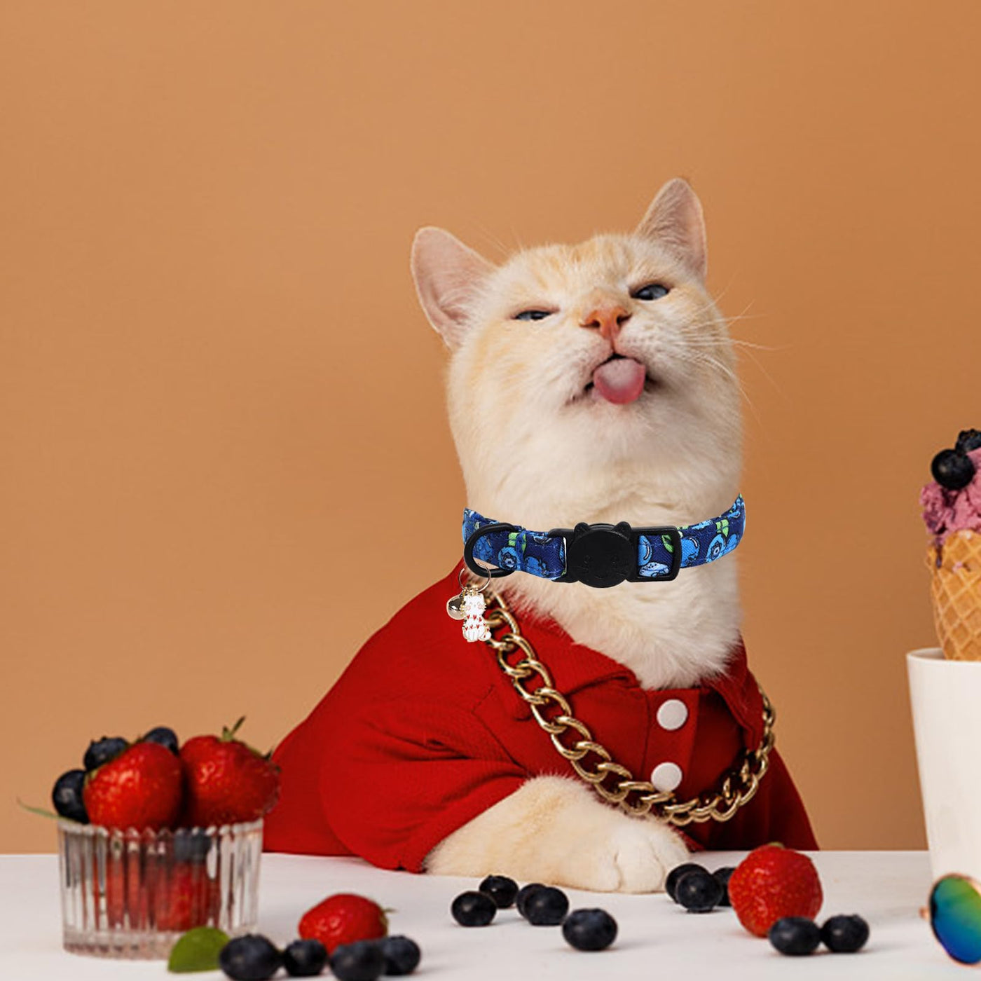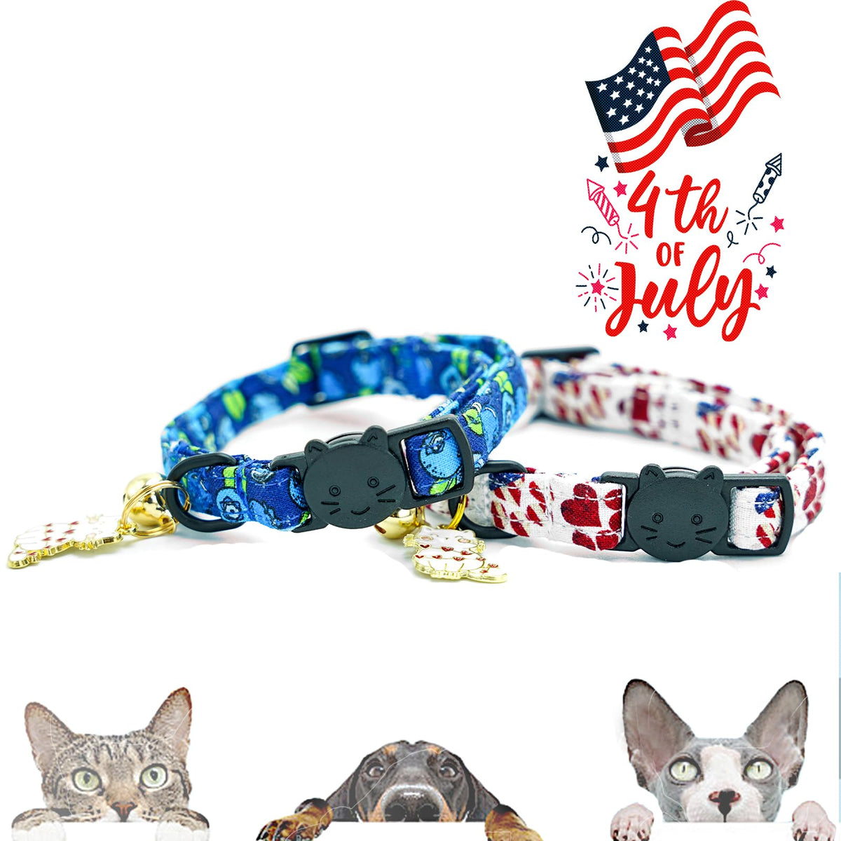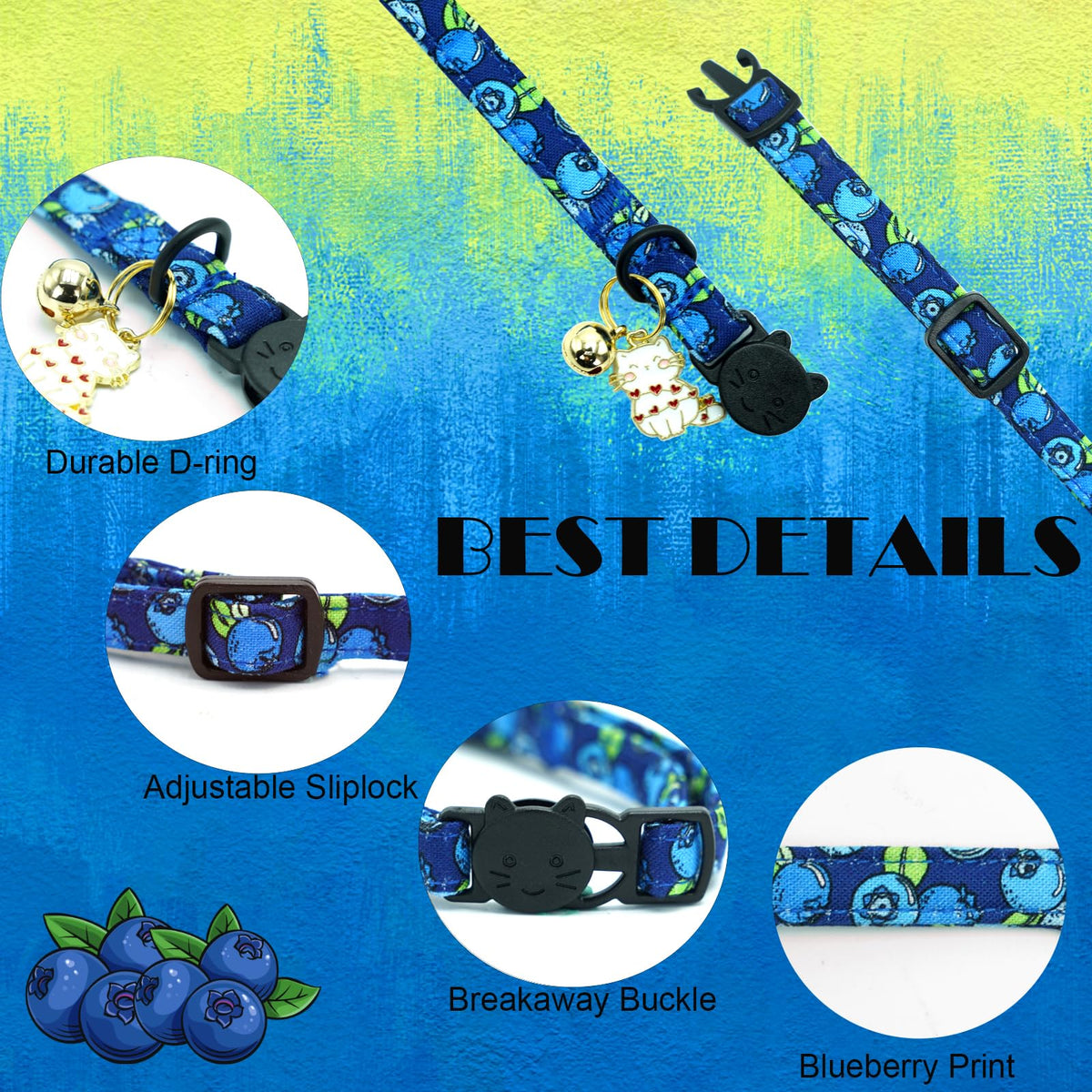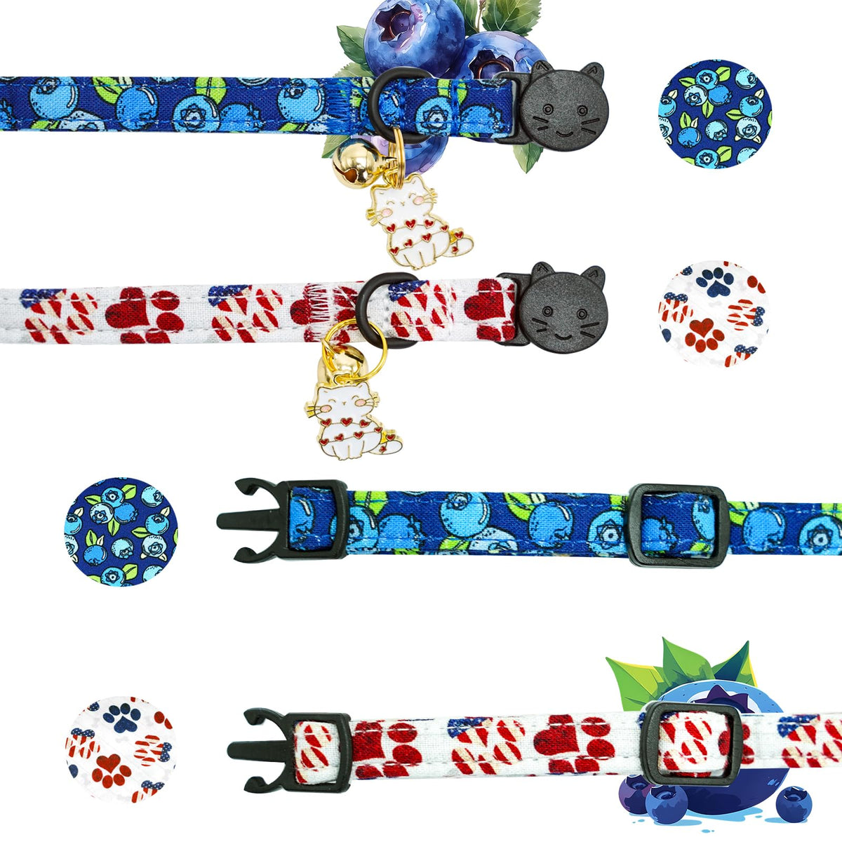 Elegant Little Tail 2 Pack Cat Collar- Blueberry Cotton Breakaway Cat Collars With Bell Pendant Kitten Boy Girl Safety Adjustabl