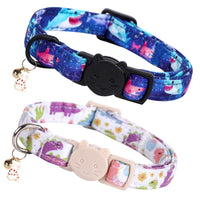 Elegant Little Tail 2 Pack Cat Collar-Dinosaur & Shark Cotton Breakaway Cat Collars With Bell Pendant Kitten Boy Cats Safety Adj