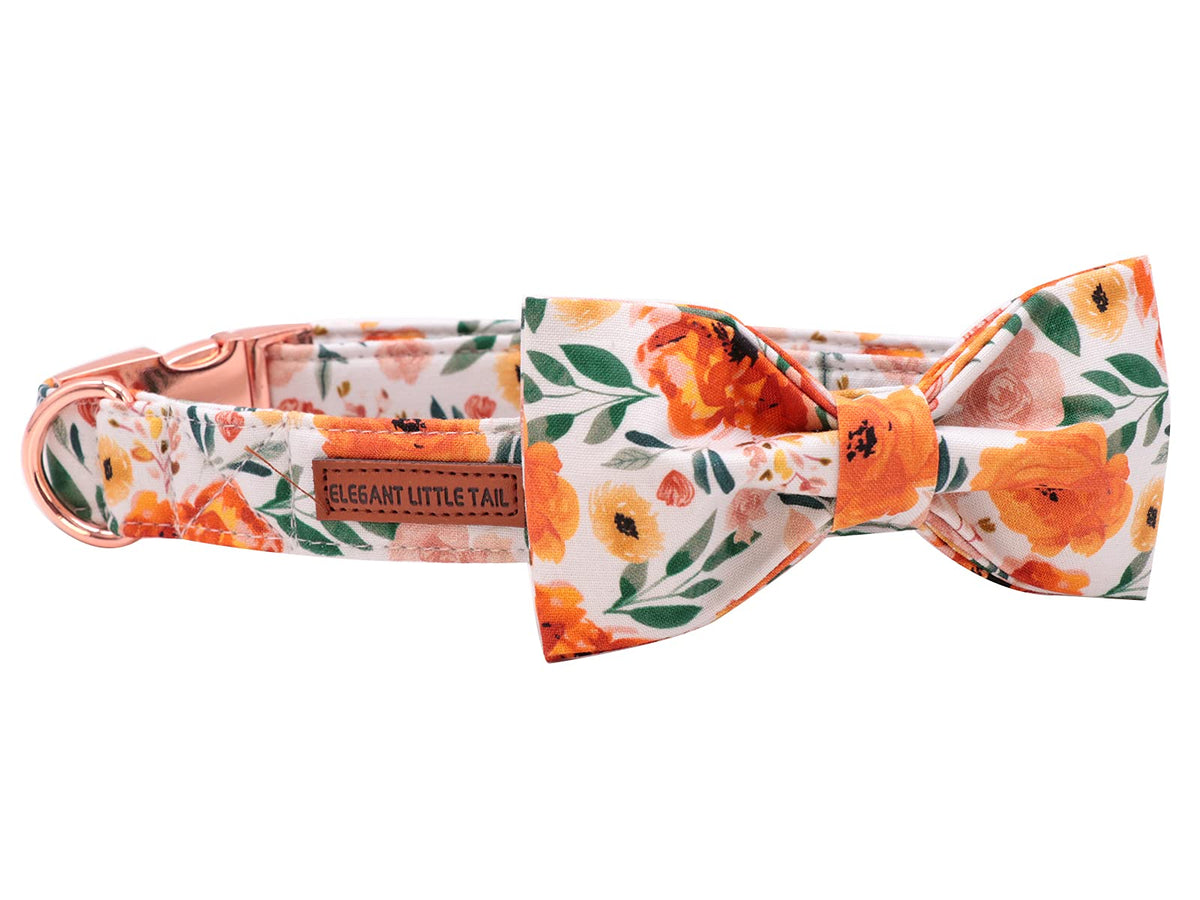 Elegant Little Tail Floral Dog Collar With Bow, Comfotable Dog Bowtie, Bowtie Dog Collar Adjustable Girl Dog Collars For Small M