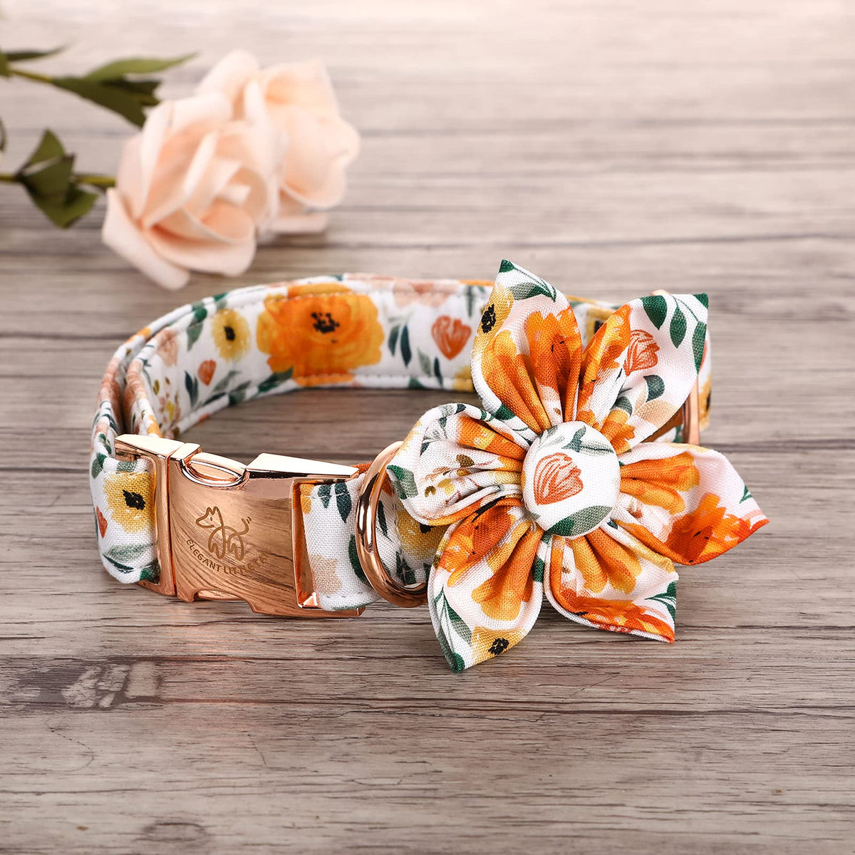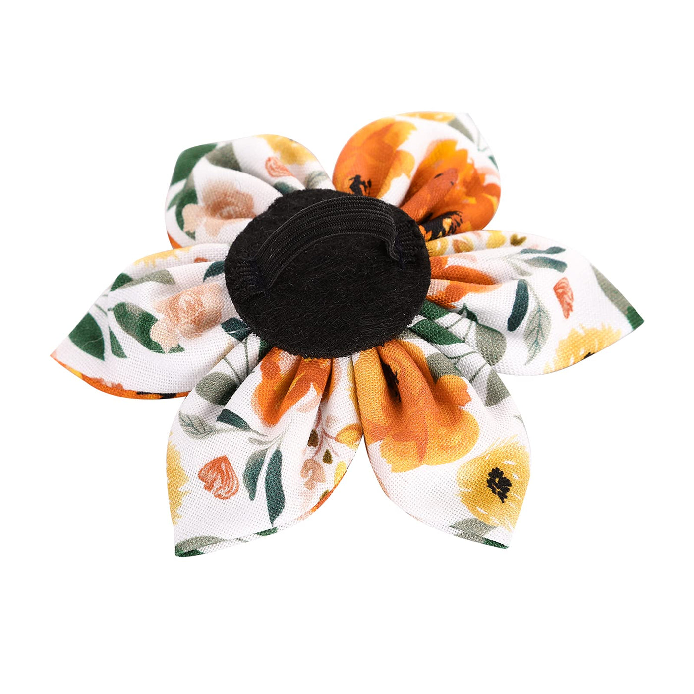 Q: Is the flower decoration on the collar removable?A: Yes, the flower decoration is removable. It comes with an elastic loop on the backside, allowing it to easily fit most dog collars. This feature provides versatility, enabling you to customize your pet's look.