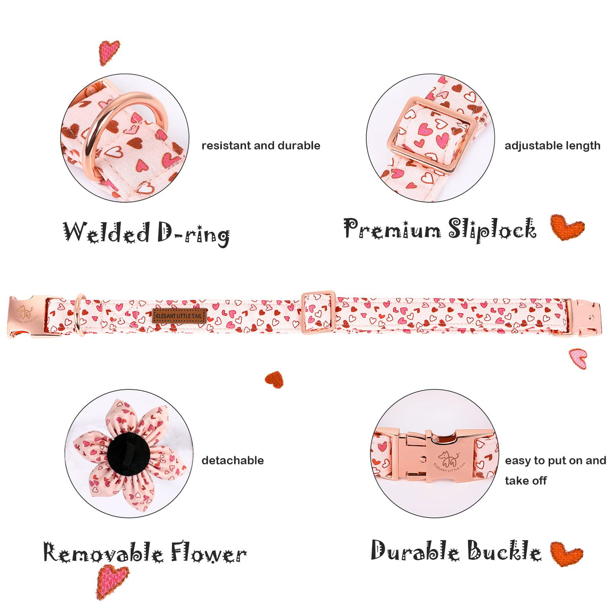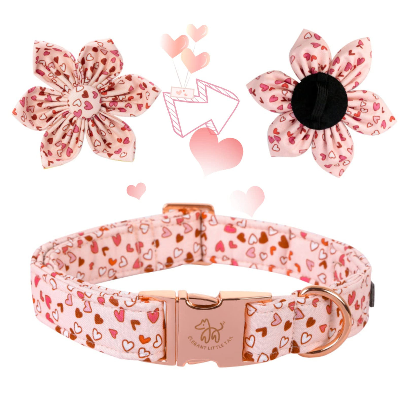 Elegant Little Tail Valentine 'S Heart Dog Collar, Cute Detachable Dog Collar With Flower, Gift Pet Collar Adjustable Dog Collar