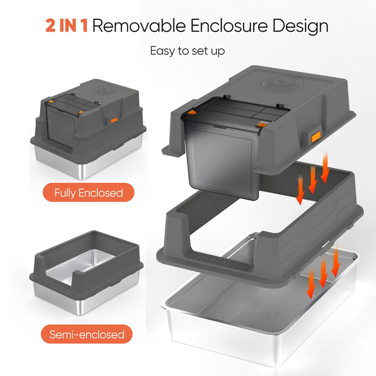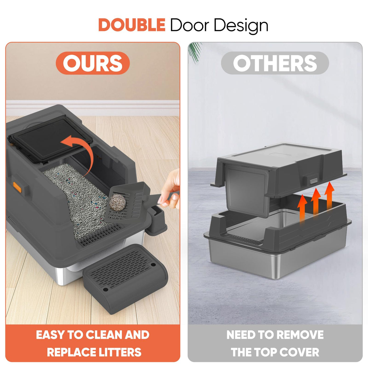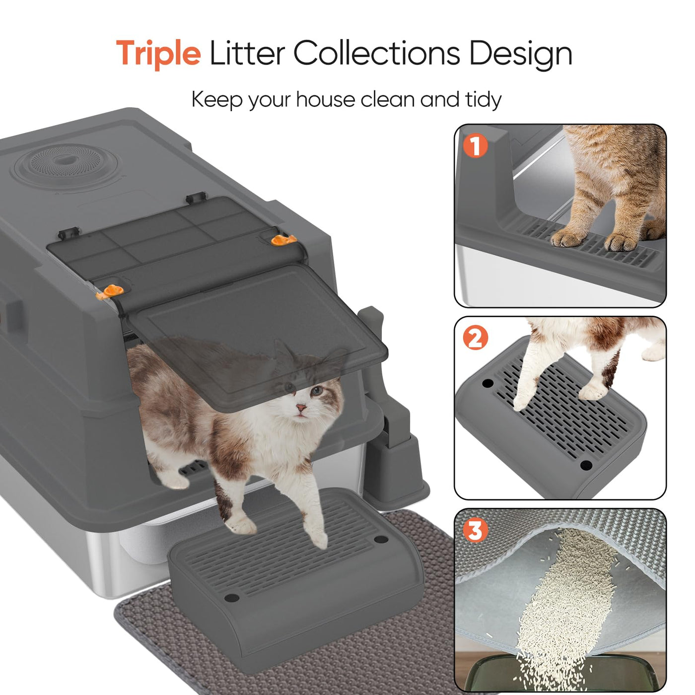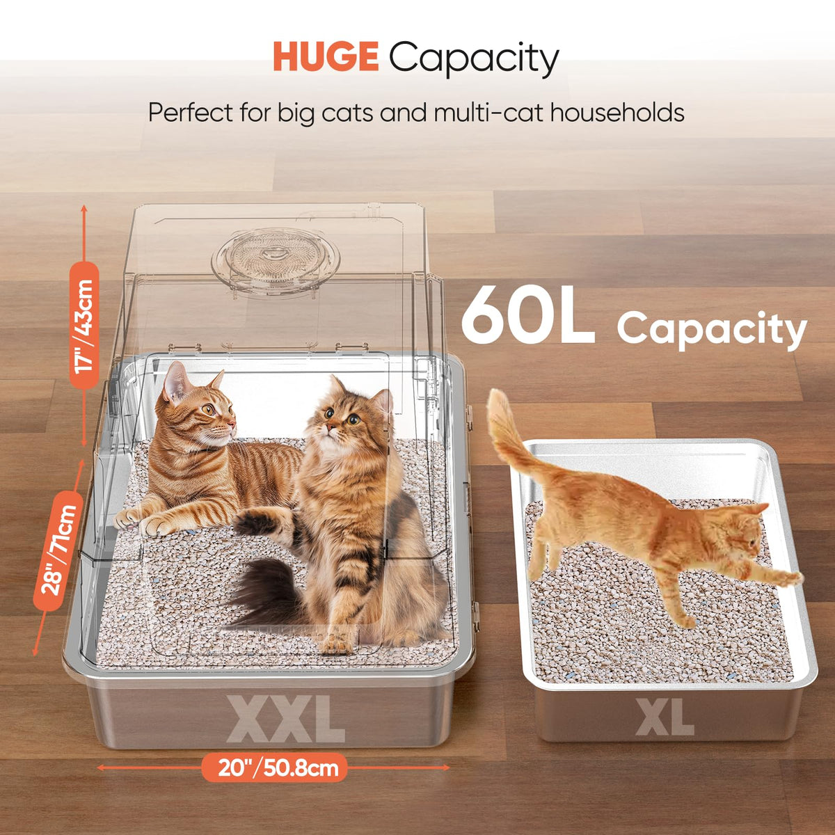 Elegx Xxxl Extra Large 28'' L 20'' W Odor-Control Stainless Steel Cat Litter Box, 4-In-1 Cat Metal Litter Box Set,Enclosed Remo