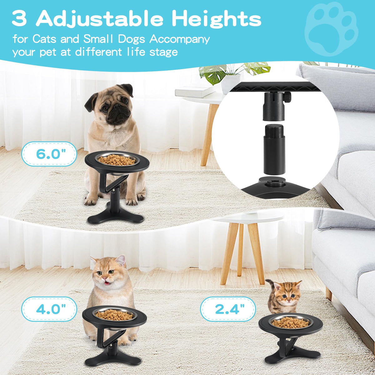 This Elevated Dog Bowls Set Makes A Practical And Thoughtful Gift For Cat Owners. It Emphasizes The Importance Of Proper Pet Feeding And Health, Making It Ideal For Both Experienced And New Cat Parents Specifications: Material: Abs Stand + Stainless Steel Bowls Color: Black/Pink (Two Choice) Size:&Nbsp;Tilt Angles Range: 0 To 15 Degrees &Nbsp; &Nbsp; &Nbsp; &Nbsp; &Nbsp;Height Range: About 2.4, 4, And 6 Inches Notes:Manual Measurement, Please Allow Slight Errors On Size. Warm Note: Please Adjust The Size Accordingly For Your Beloved Cat'S Growth Journey.
