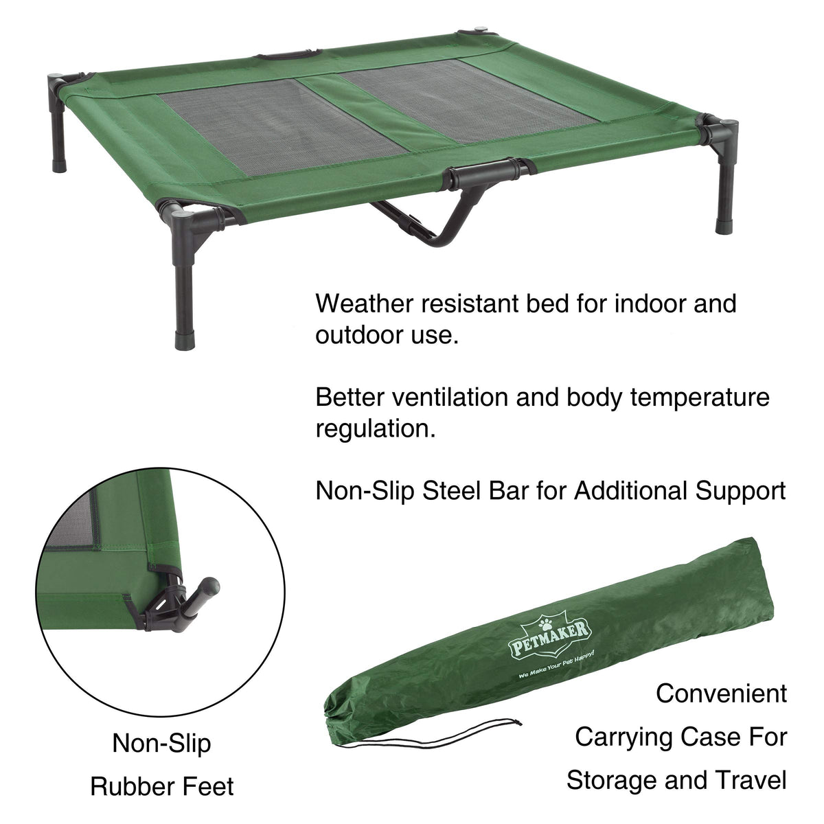 Elevated Dog Bed - 36X29.75 Portable Bed For Pets With Non-Slip Feet - Indoor/Outdoor Dog Cot Or Puppy Bed For Pets Up To 80Lbs By Petmaker (Green)