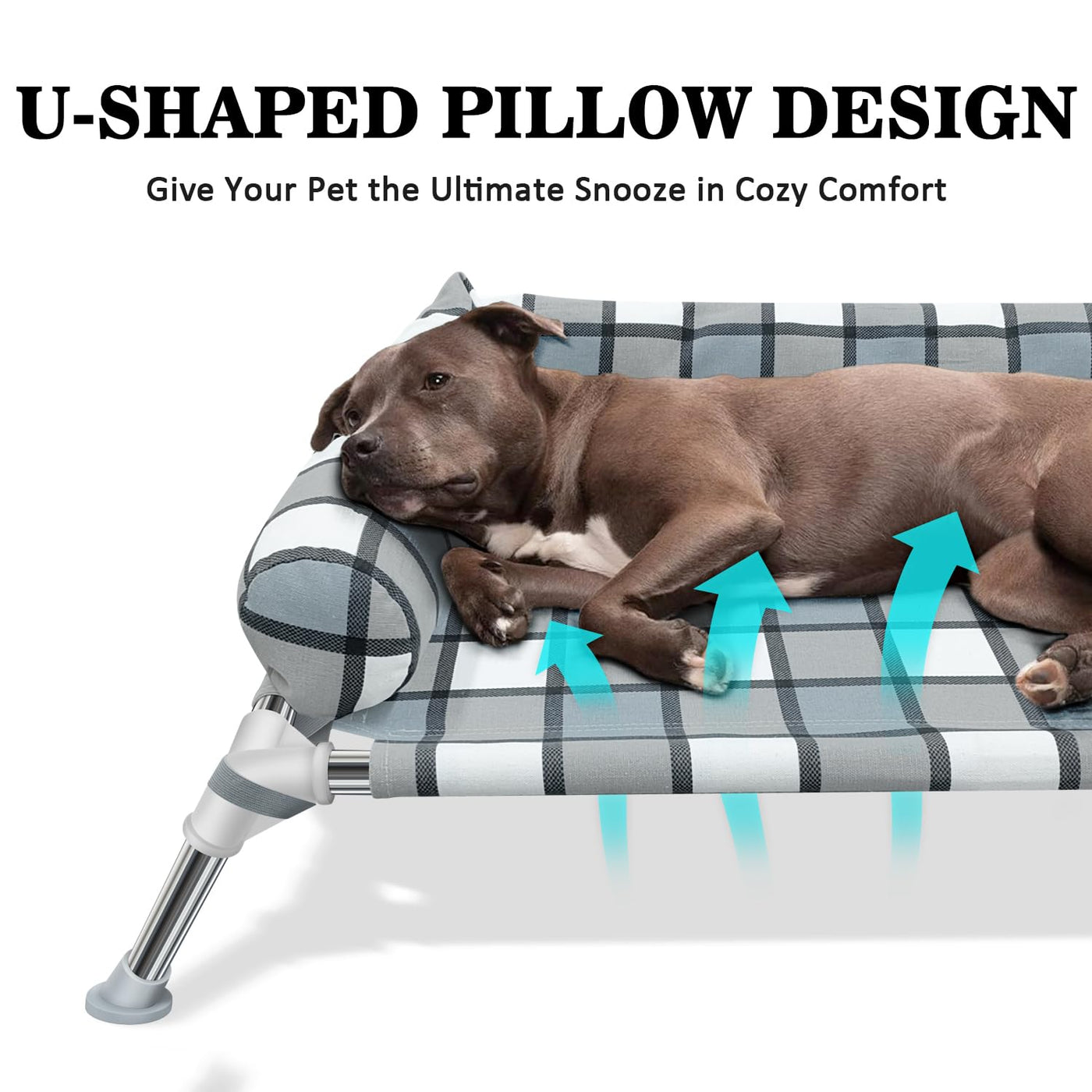 Elevated Dog Cot - Cooling Raised Bed With Pillows, Portable Washable Pet Hammock, Metal Frame For Indoor & Outdoor, Large