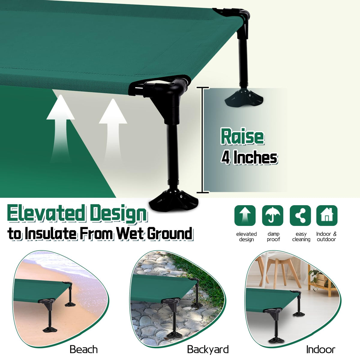 Introducing Our Upgraded Elevated Dog Bed With Canopy - The Ultimate Solution To Keep Your Furry Friend Comfortable And Cool In Summer! This Portable Raised Outdoor Dog Bed Is Designed With A Wider Shade Pet Bed Cot And Stable Anti-Slip Feet, Making It Suitable For Large Dogs For Outdoor Backyard, Park, Patio And Camping Trips. The Elevated Design Allows The Air To Flow Around Your Pet, Ensuring They Remain Fresh And Dry. The Improved Canopy Provides A Wider Shade, Offering Excellent Protection From The Sun And Shelter From The Rain. Our Upgraded Dog Bed Is Easy To Assemble And Disassemble, Making It Effortlessly Portable, And Can Hold Up To 165 Pounds. The Raised Cot Also Keeps Your Pet Off The Ground, Reducing The Risk Of Insect Bites. So Give Your Furry Friend The Best Sleep Of Their Life With Our Upgraded Elevated Dog Bed With Canopy, And Enjoy The Peace Of Mind Knowing That They Are Comfortable, Safe, And Protected - No Matter Where Your Adventures Take You!