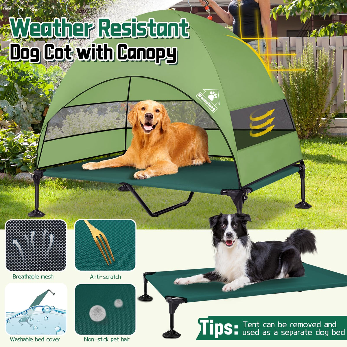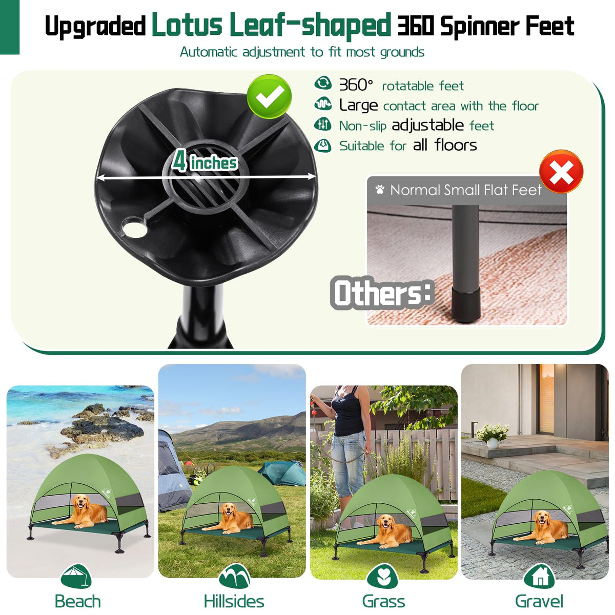 Elevated Outdoor Dog Bed With Canopy, Raised Dog Cot With Stable Adjustable Feet, Dog Camping Bed With Larger Shade, Lifted Dog