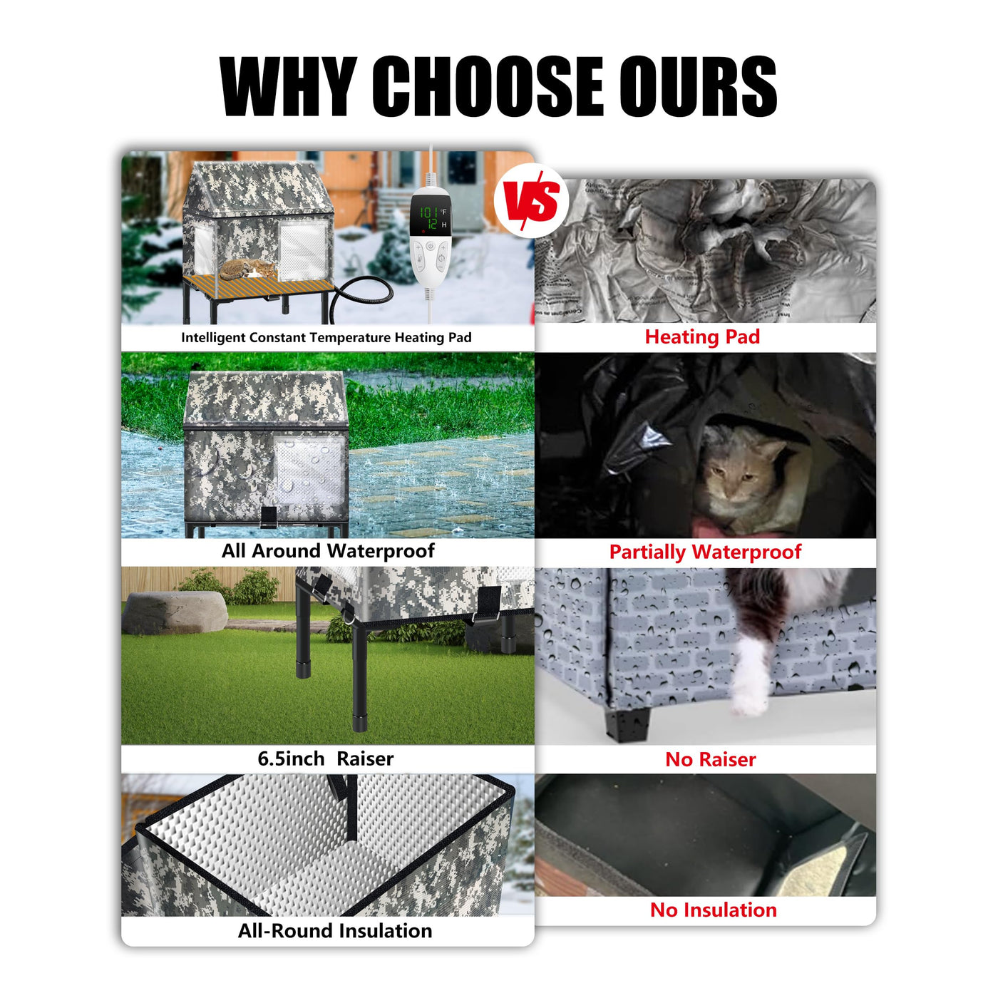 Elevated Weatherproof Heated Cat House, 100% Waterproof, 16.5In X 12.8In X 18.7In, Safe Escape Door, Insulated For Ferals & Stra