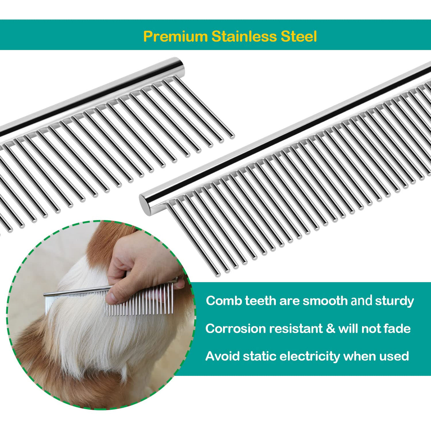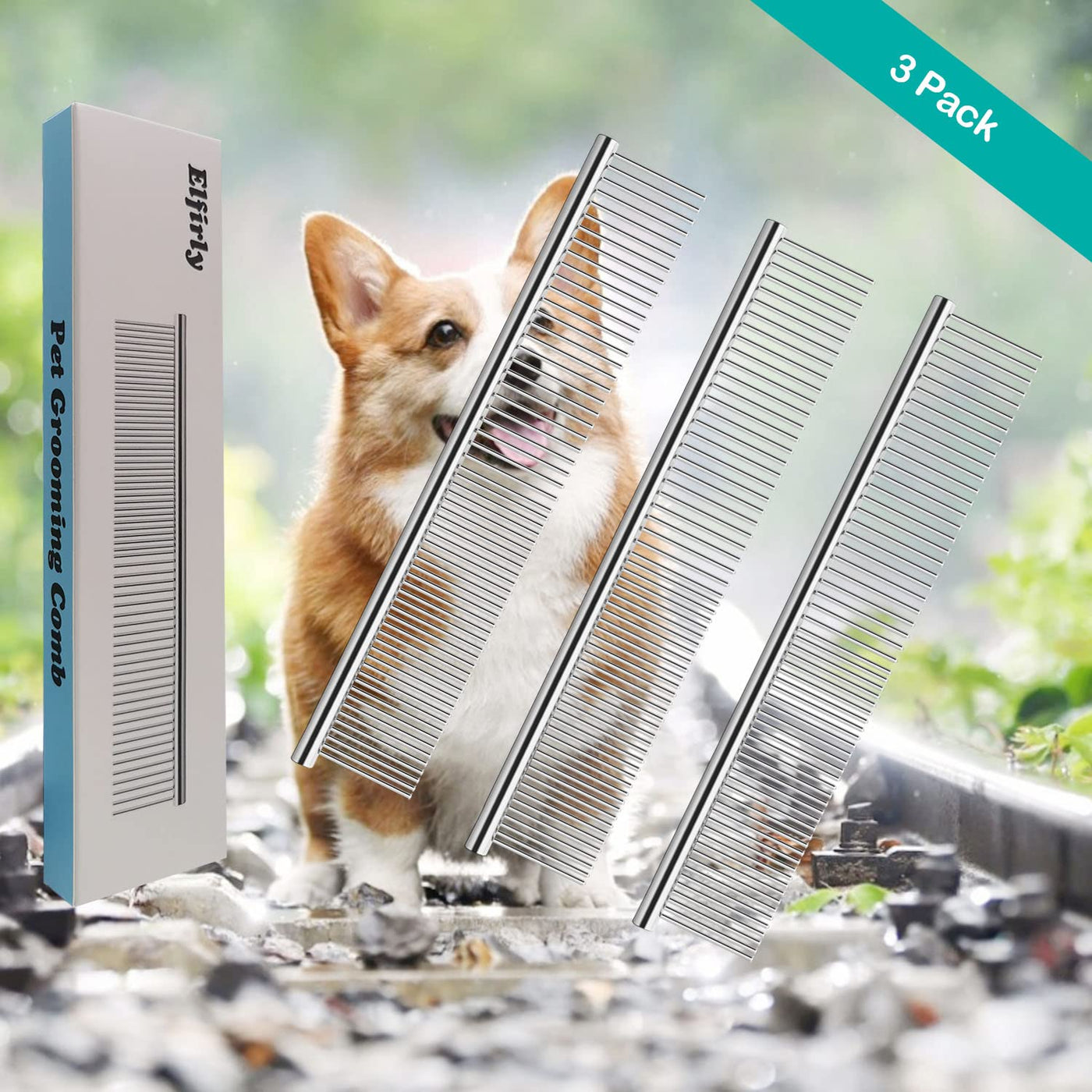 Elfirly 3 Pack Dog Combs For Grooming Matting, Metal Cat Comb With Round Ends, Stainless Steel Pet Grooming Comb For Removing Tangles And Knots For Long And Short Haired Dog (7.4 Inches)