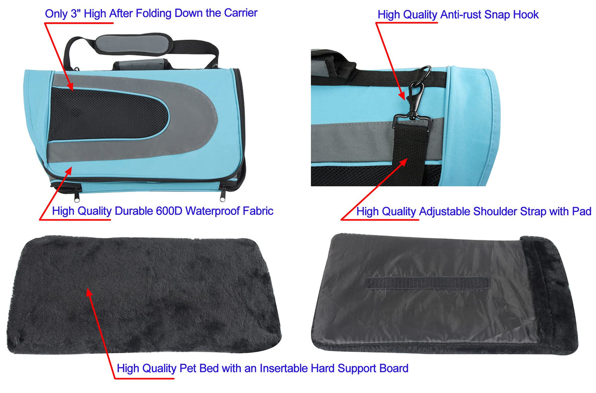 Embark On Your Travels With The Assurance Of Comfort And Safety For Your Furry Friend Using The Elitefield Pet Carrier. This Airline-Approved Carrier Is Specially Designed To Cater To The Needs Of Cats, Small Dogs, And Other Small Pets. It Features Comfortable Padding That Ensures A Cozy Journey For Your Pet. Prioritize Your Pet'S Comfort By Measuring Their Height And Width Before Selecting A Carrier, Ensuring A Perfect Fit For Their Travel Adventures. The Elitefield Pet Carrier Is Distinguished By Its Exceptional Features, Ensuring Your Pet'S Comfort And Security. It Comes With A Removable And Washable Plush Soft Bed Cover, Complemented By An Insertable Hard Support Board That Maintains The Carrier'S Shape And Provides A Comfortable Environment For Your Pet. The Carrier'S Construction Of 600D Fabric With Internal Padding Enhances Its Durability And Form, Keeping Your Pet Safe. Additionally, The Built-In Leash Adds An Extra Layer Of Security, Allowing Your Pet To Be Securely Fastened Inside. Crafted From Durable, Lightweight, And Waterproof Materials, This Pet Carrier Stands Out In Terms Of Quality And Ease Of Maintenance. The Mesh Netting On The Front And Sides Offers Ample Sunlight And Breathability, Creating A Pleasant And Stress-Free Experience For Your Pet. It'S Also Equipped With A Pocket For Storing Accessories, A Carrying Handle, And An Adjustable Padded Shoulder Strap For Versatile Carrying Options. The Carrier Can Even Be Secured To A Car Seat Headrest For Safer Car Travels. When Not In Use, It Conveniently Folds Down To A Mere 3 Inches For Easy Storage. Backed By A 3-Year Warranty. Our Products Come With A Quality Guarantee, Money-Back Guarantee, And Customer Satisfaction Guarantee.