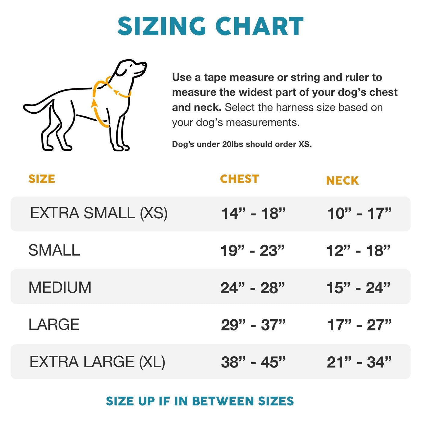 Q: What sizes does the Embark Adventure Dog Harness come in?A: The Embark Adventure Dog Harness is available in three sizes: Small for breeds like French Bulldogs and Pugs, Medium for breeds such as Pitbulls and Boxers, and Large for larger breeds including German Shepherds and Great Danes. Be sure to check the sizing chart for accurate measurements.